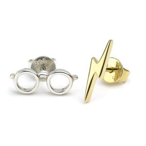 Harry Potter – Sterling Silver Lightning Bolt and Glasses Stud Earrings