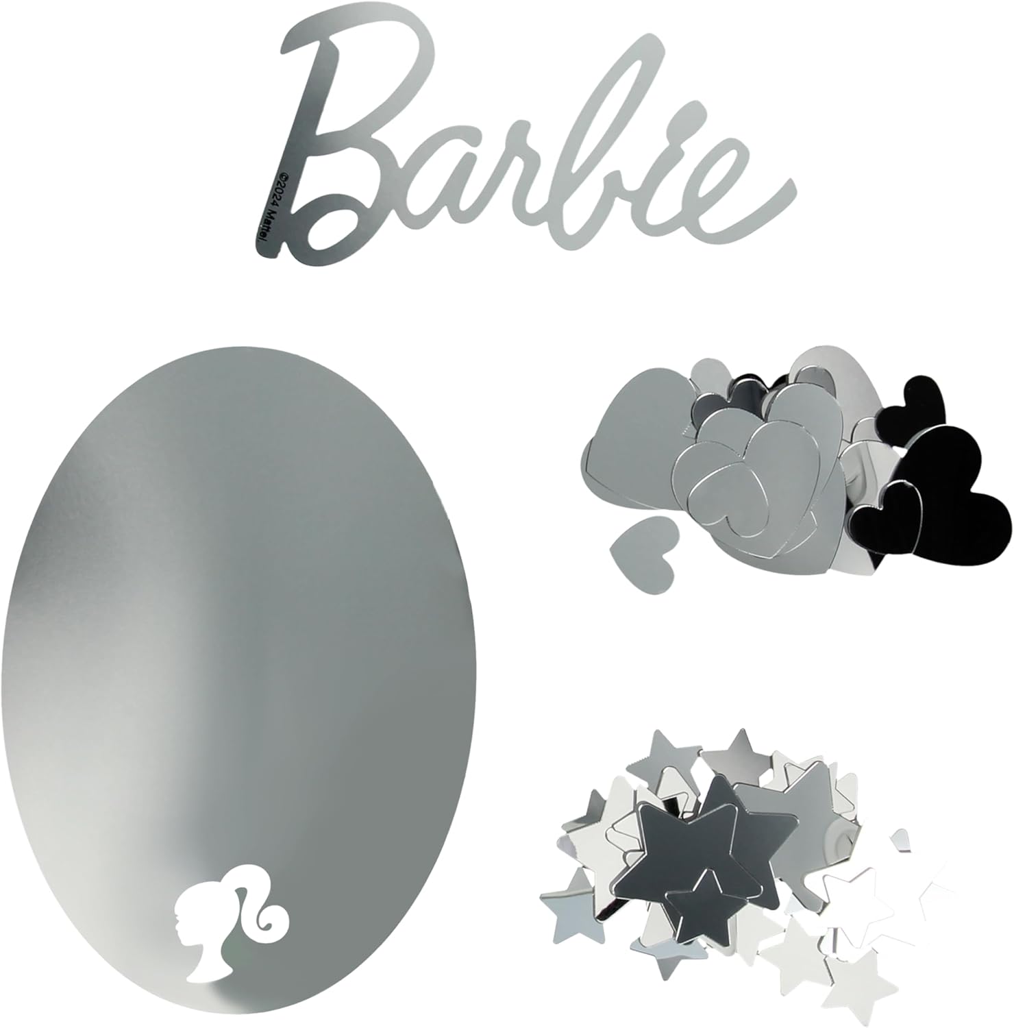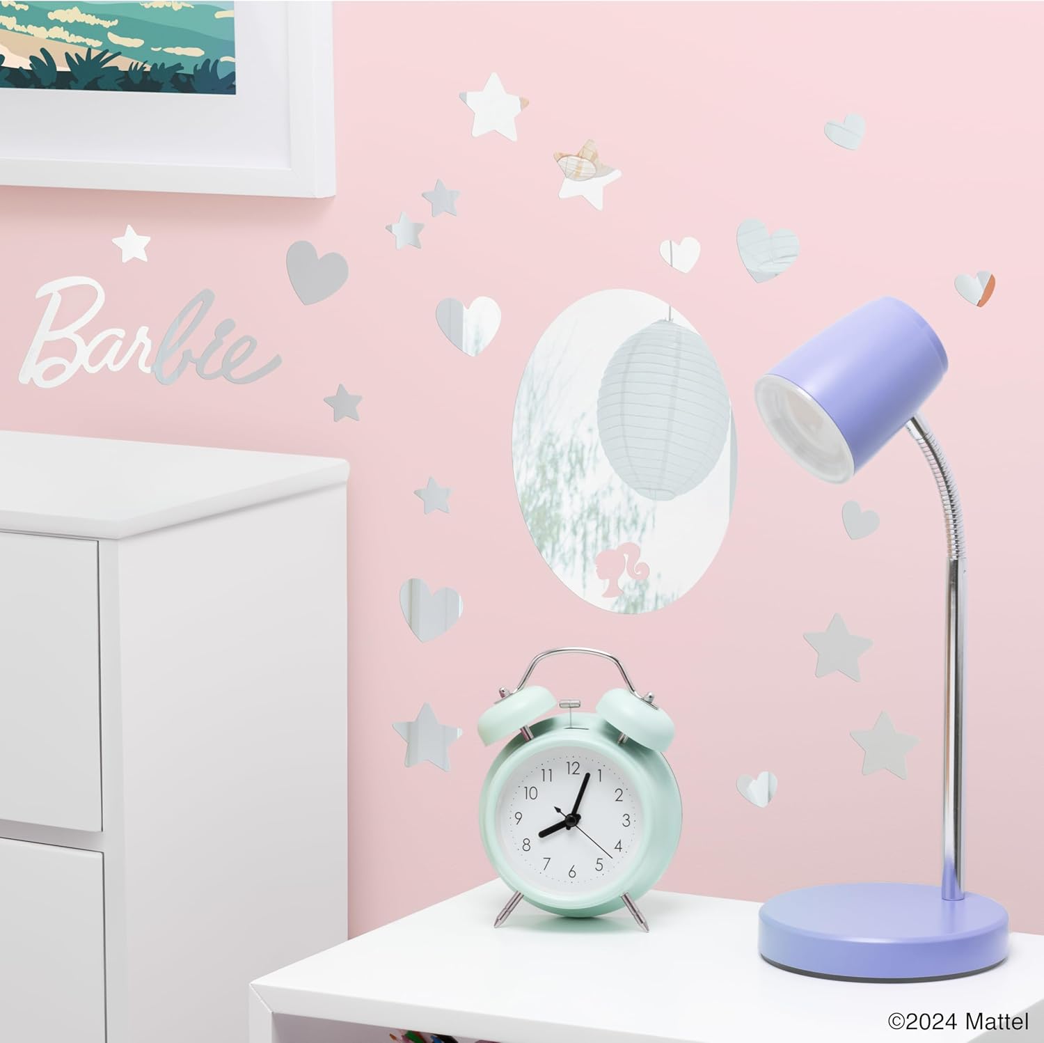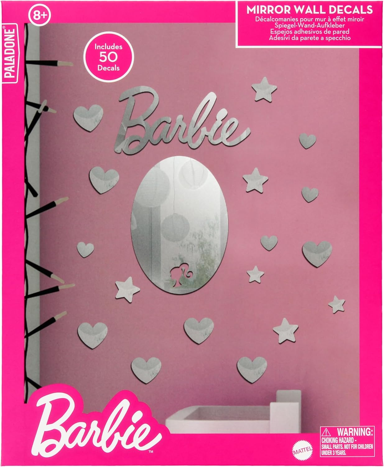 Bring the magic of Barbie into your child’s room with these mirror decals, featuring the iconic Barbie logo. Includes 50 fun-shaped mirror decals, like hearts and stars, to add sparkle and imagination to any space.