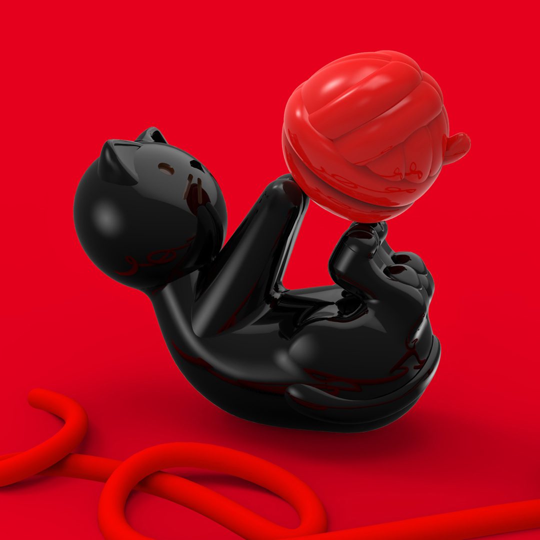 🐱 Cat playing with wool keyring – playful, curious, and oh-so-cute