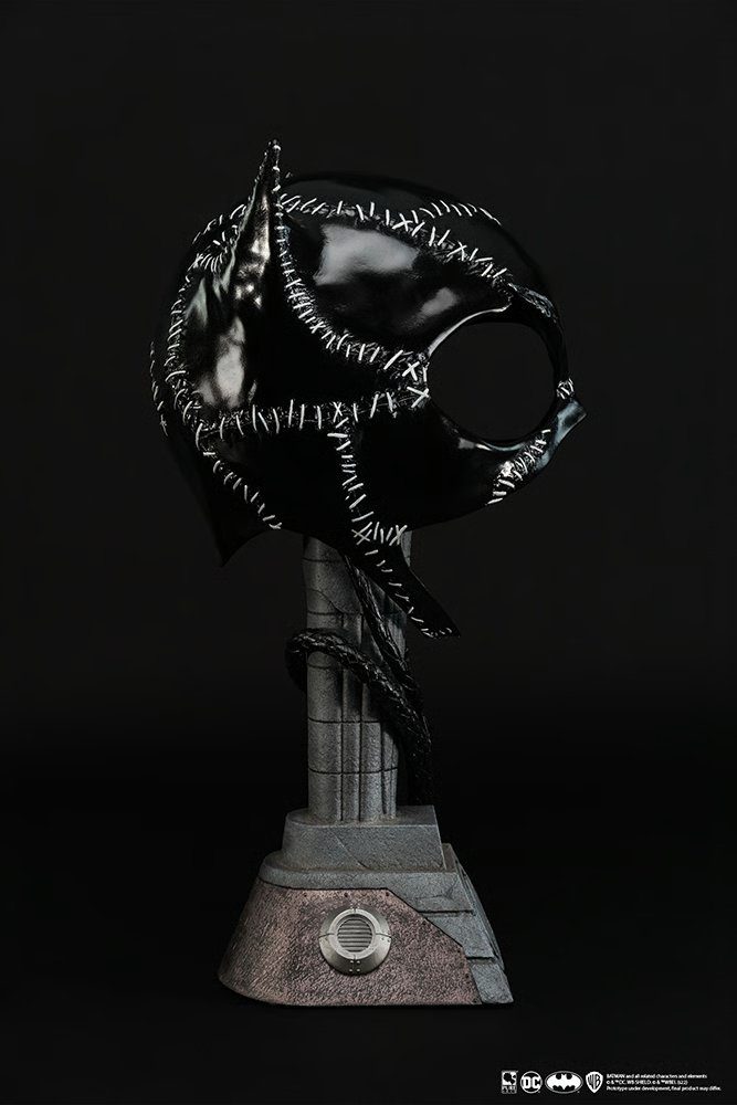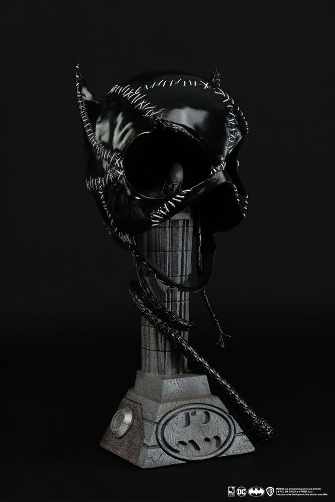 “You’re the second man who killed me this week, but I’ve got seven lives left.” – Catwoman (Batman Returns) Sideshow and PureArts are proud to introduce the new Batman Returns Catwoman Life-Size Scale Mask Replica. Featuring the exclusive poly-based casting material developed specifically for Batman products, this mask looks and feels like real high gloss latex without the downside of this material. The white threading effect is sculpted exactly like the screen-used hero mask and includes a removable whip and the Mayoral House statue base. Don’t miss your chance to add this beautifully sculpted life-size bust to your DC Comics collection!