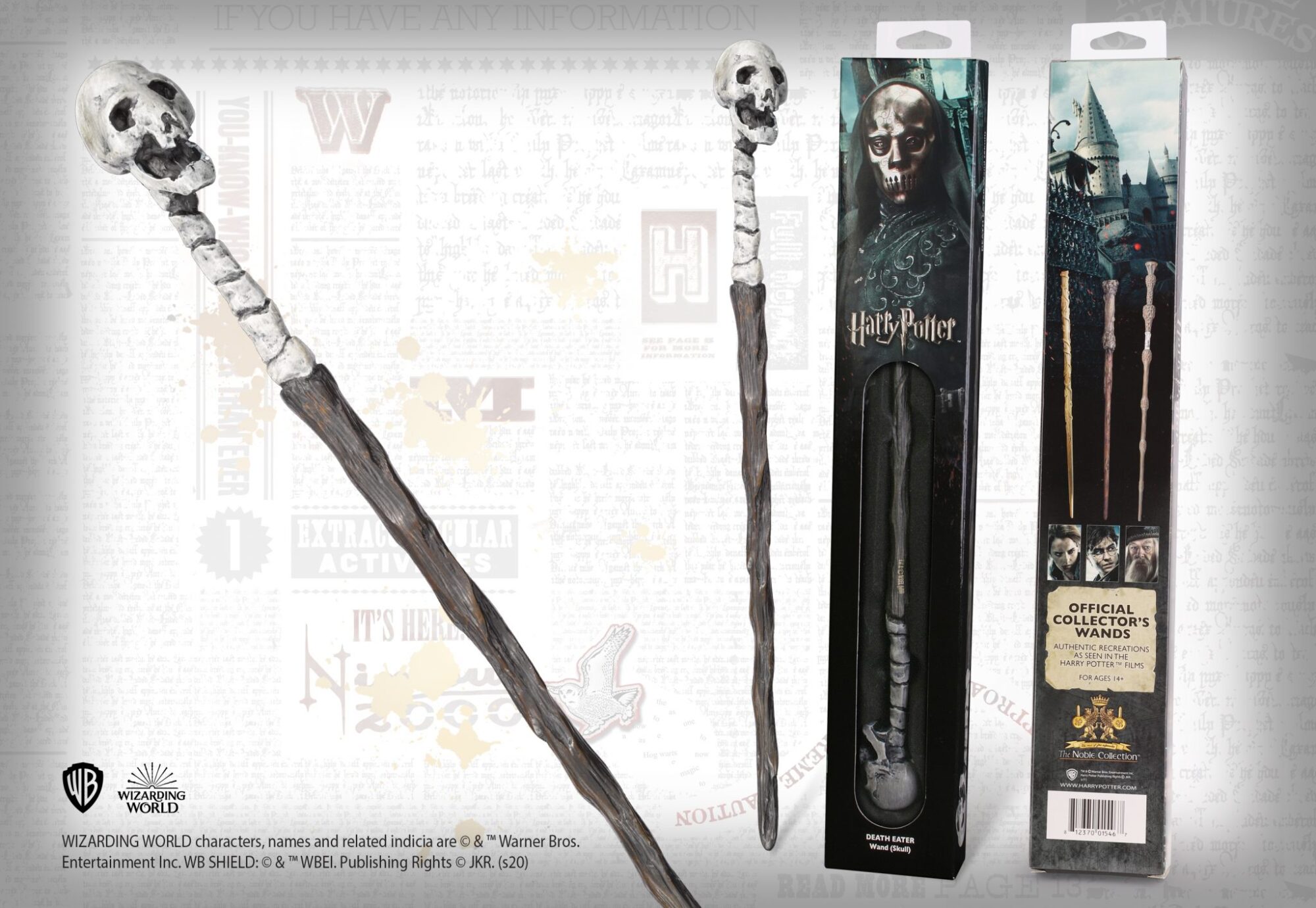 Death Eater skull wand in a standard window box.