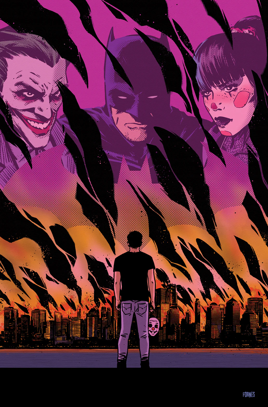 Batman is back! And just in time to save the life of Nightwing, who was given a fear toxin super-dose and tossed out of a skyscraper—another tragedy surrounding Arkham Tower’s hostile takeover. As Scarecrow readies his forces for the big bat, war erupts on every floor of the building between the Penguin’s thugs, the Party Crashers, the murderous Arkham inmates, and an overwhelmed Bat-Family who’s struggling to get everyone out alive! Will the return of the bat be enough to turn the tide to victory…or does another X factor lurk in the battle that could save the day? The penultimate chapter of “House of Gotham” arrives as a battle erupts between Batman, The Joker, and the Boy in horrifying fashion! Bruce Wayne has felt responsibility for this situation for years now…but does he have what it takes to save the life of his sworn enemy?