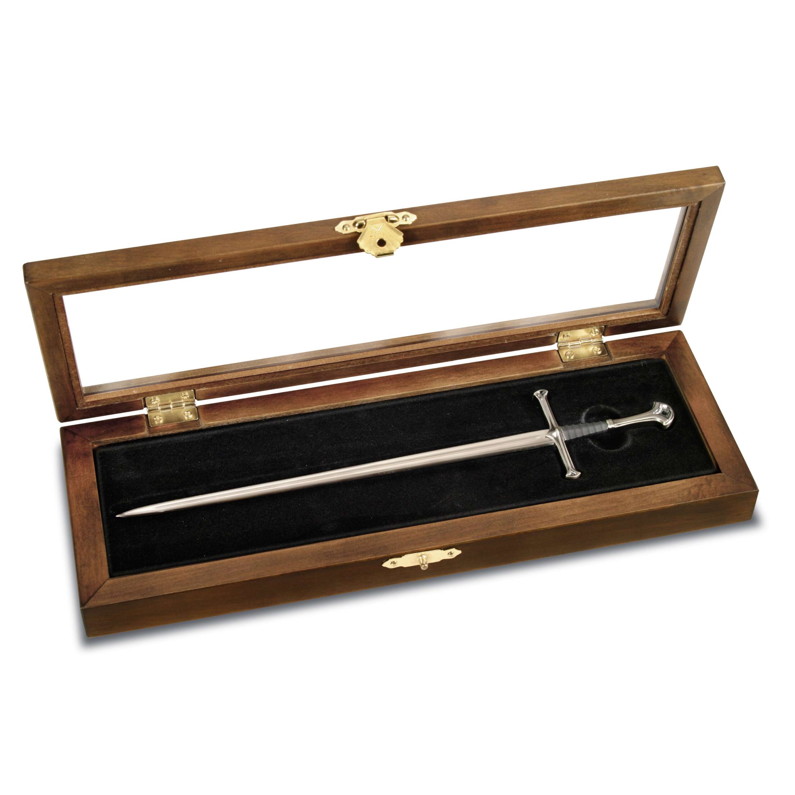 A miniature recreation of the sword Narsil, wielded by King Elendil before it was broken and reforged, in letter opener form. Comes with a wooden presentation box.