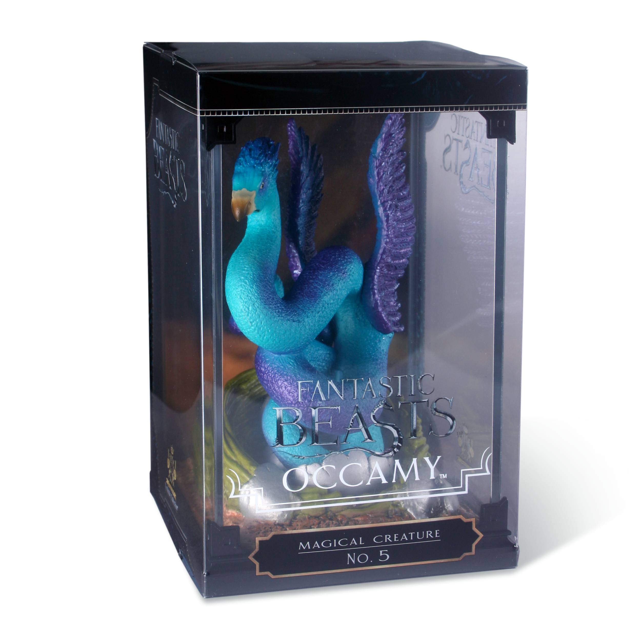 A finely crafted, hand painted diorama of the Occamy from Fantastic Beasts, a creature that can grow or shrink to fit the available space. The Occamy lays silver eggs and can be aggressive to those that approach it, particularly when protecting its eggs.