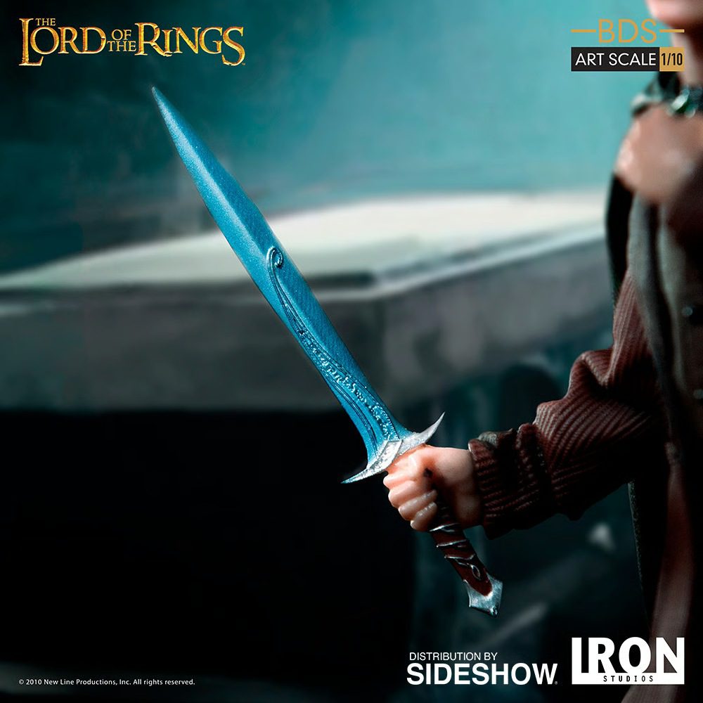 This 1:10 Art Scale version of Frodo brings characteristic details that represent the character throughout the trilogy, like the Sting and the Leaf of Lórien. Frodo can be displayed individually as well as part of a battle diorama along with the Nazgul.
