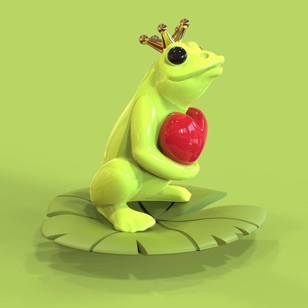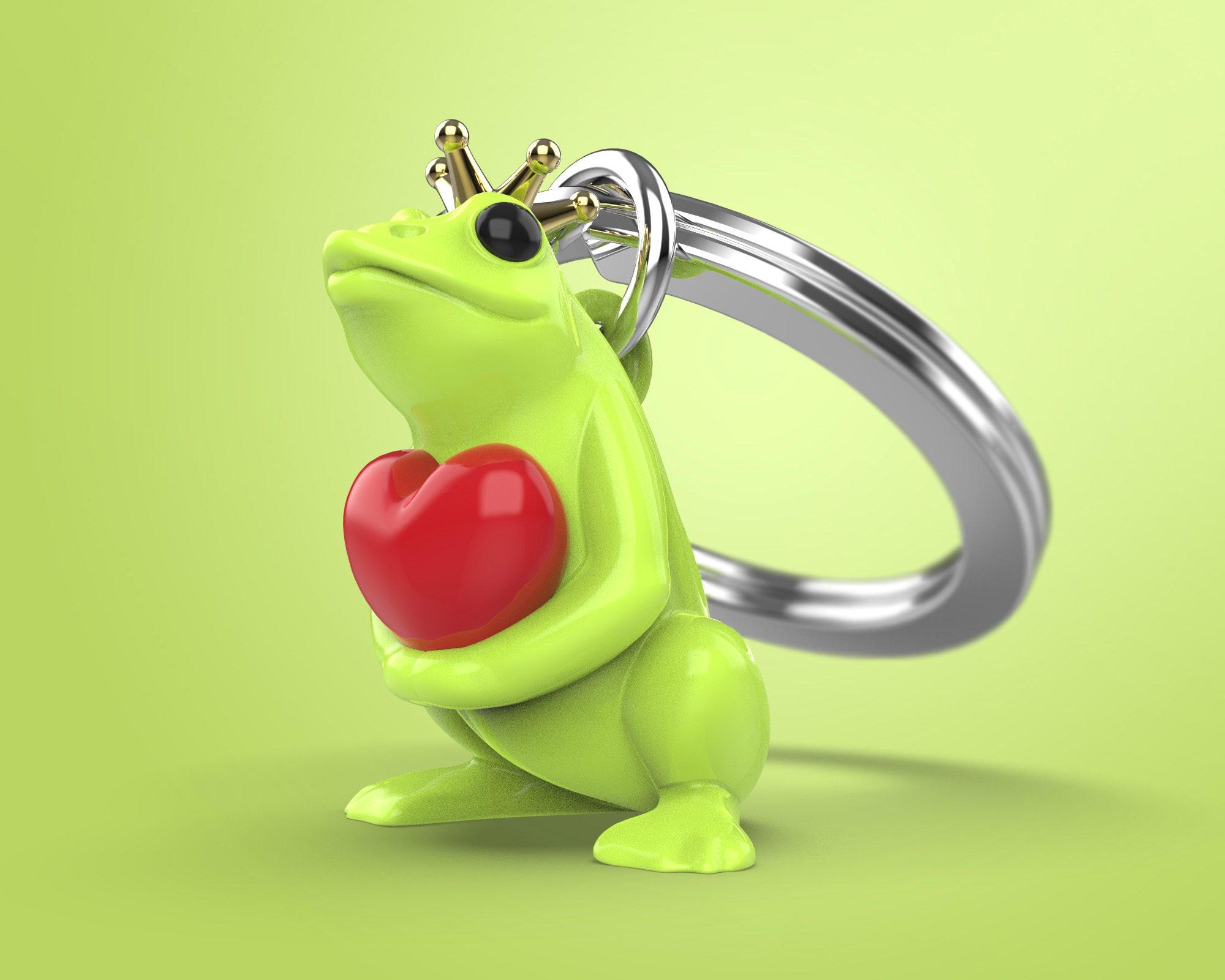 Green paint, red heart, black epoxy & gold finish crown