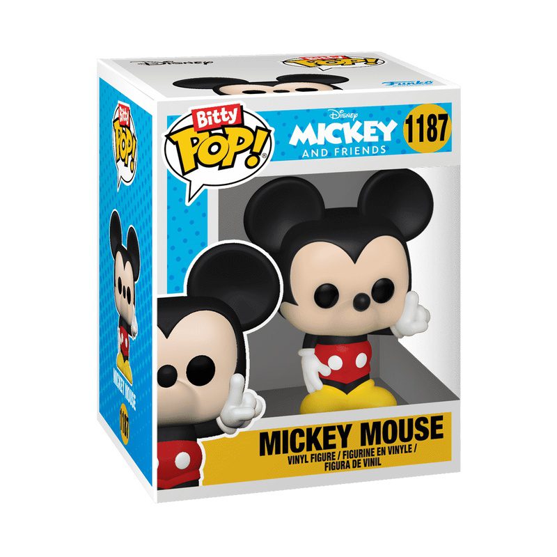 The world of POP! is getting bigger—and smaller—with Bitty POP! collectibles! Expand your Disney collection with this 2-pack featuring Bitty POP! Mickey Mouse and Bitty POP! Minnie Mouse! Bitty POP! collectibles are packaged in hard acrylic cases with detachable bottom lids. Detachable bottom lids double as acrylic bases, to which the Bitty POP! figures are adhered. Vinyl figures are approximately 0.9 in (2.3 cm) tall.