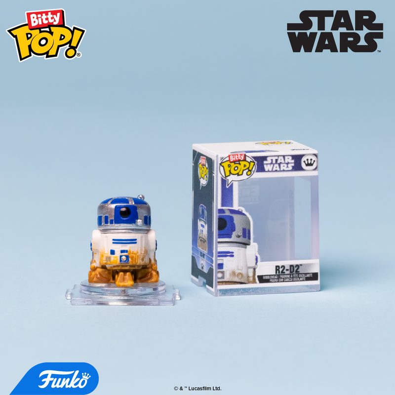 The world of POP! is getting bigger—and smaller—with Bitty POP! collectibles! Expand your Star Wars™ collection with this assortment of Bitty POP! collectibles featuring the most stellar characters in the galaxy! This 4-pack includes Bitty POP! Luke Skywalker™ (Hoth™), Bitty POP! R2-D2™, Bitty POP! Chewbacca™, and a mystery Bitty POP! figure. The possible mystery Bitty POP! collectibles are Hyper Rare (1/6) Han Solo™ in Carbonite, Hyper Rare (1/6) Bossk™, Rare (1/3) Princess Leia™ (Bespin), and Rare (1/3) Han Solo™ (Hoth).