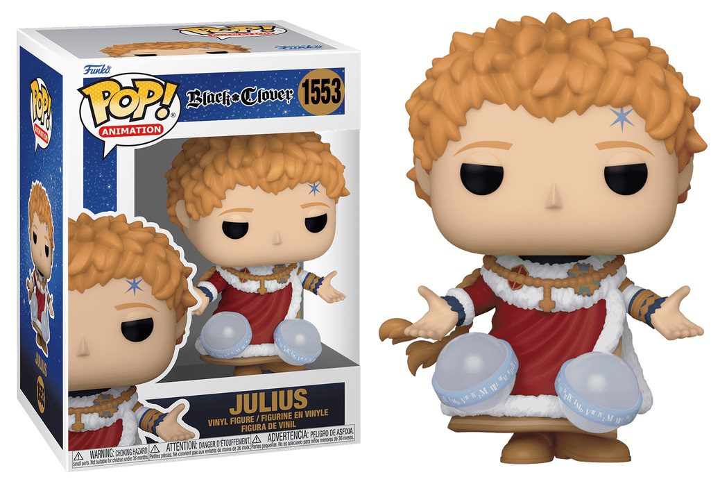Pop! Julius has arrived to lead the wizards of the Clover Kingdom! Impart wisdom on you Black Clover set when you welcome this Wizard King into your collection. Vinyl figure is approximately 4.15-inches tall.