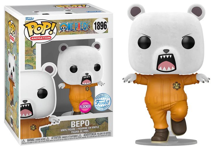 Set sail with POP! Bepo of the Heart Pirates! Expand your One Piece collection by adding this exclusive, flocked POP! Bepo to your scurvy crew. Vinyl figure is approximately 4.25-inches tall.