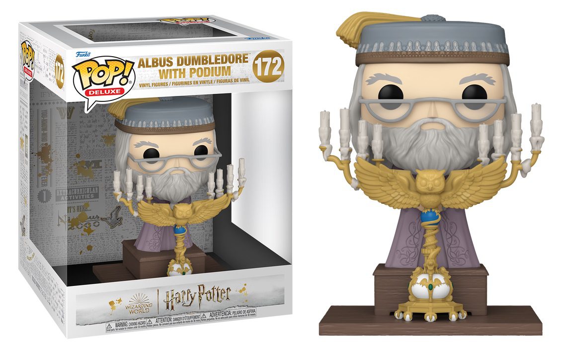 Attention! Professor Dumbledoreâ„¢ has stepped up to the Owl Lectern with an announcement to kick off the beginning of the term. Celebrate the Harry Potter and the Prisoner of Azkabanâ„¢ movie and expand your Wizarding Worldâ„¢ set by adding this Deluxe Pop! Albus Dumbledoreâ„¢ with Podium to your Harry Potterâ„¢ collection. Vinyl figure is approximately 4.9-inches tall.