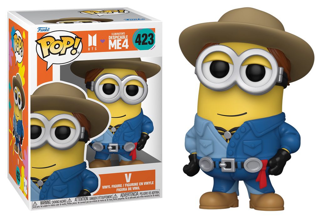 Score front row seats with Pop! V as a Minion! This member of K-pop sensation BTS is here to take the stage in your Pop! Rocks collection! Reunite him with the rest of the group in your music set as he rocks this new look inspired by Despicable Me 4. Vinyl figure is approximately 4.45-inches tall.