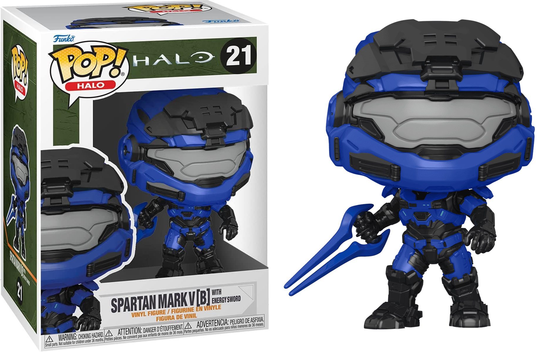 From Halo Infinite, Spartan Mark V with Blue Energy Sword, as a stylized POP vinyl from Funko!