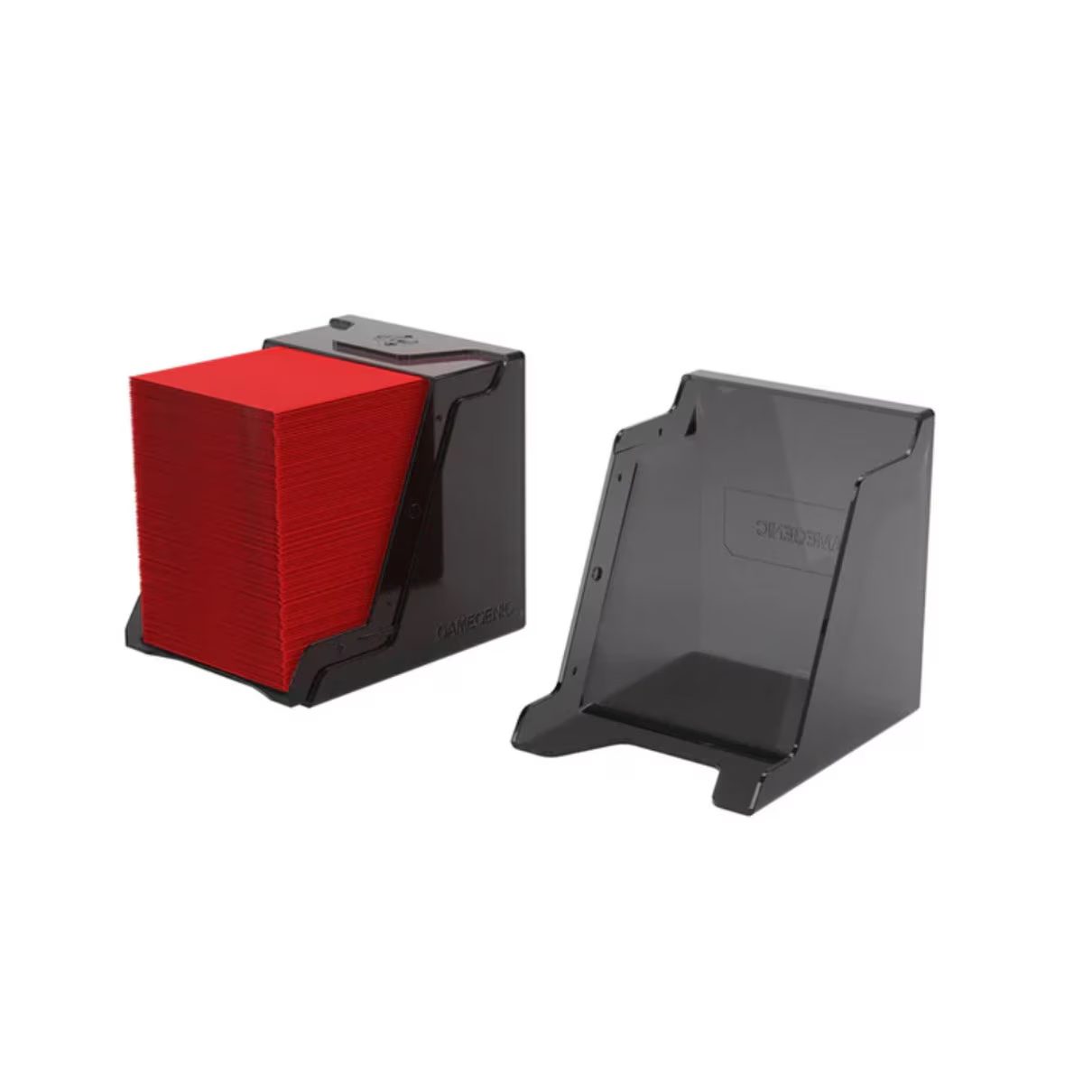 The Bastion 100+ XL is a very compact and rock-solid deck box to safely protect up to 100 double-sleeved cards in Thick Inner Sleeves. It also holds Mini Snap and Slide Card Cases as well as Cube Pockets. Due to translucent materials and smart positioning of the closing flaps, the top or Commander card is fully visible from the outside without opening the box. The innovative secure click-lock mechanism protects your deck while still allowing easy access. The Bastion consists of 2 symmetrical parts that easily convert into a card pile and discard pile holder. It is perfect for a huge variety of trading card games. Thanks to its modular design, the Bastion fits perfectly into other Gamegenic products. It also comes with a write-on sticker for personalization.