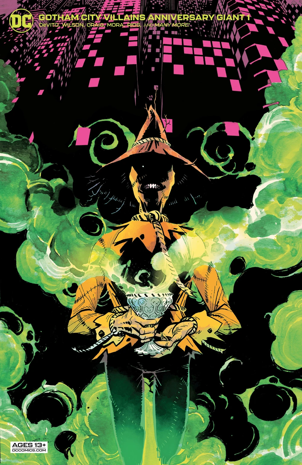 Written by Danny DEVito, Wes Craig, G. Willow Wilson, Phillip Kennedy Johnson, Joshua Williamson, Stephanie Phillips, Dan Watters, and Mairghread Scott Art by Dan Mora, Wes Craig, Emma Rios, Riccardo Federici, Max Raynor, Max Fiumara, Skylar Patridge, Ariela Kristantina, Khary Randolph, Jill Thompson, Christian Ward, Gabriel Walta, and others Gotham City may be protected by the Dark Knight, but this major metropolitan destination is also plagued by some of the deadliest, most nefarious villains in the DC Universe! In this oversize anniversary giant, DC Comics proudly presents tales of Batman’s deadliest foes written and drawn by some of the biggest, most exciting names in comics! 2021 marks an anniversary year for the Scarecrow, Poison Ivy, Ra’s al Ghul, Talia al Ghul, the Mad Hatter, Killer Moth, and the original Red Hood, and Gotham City Villains Anniversary Giant #1 brings these baddies to life in some big ways! Also featuring the anniversary celebration of the Penguin, written by none other than the man who brought Oswald Cobblepot to life in Batman Returns, star of the silver screen Danny DeVito!