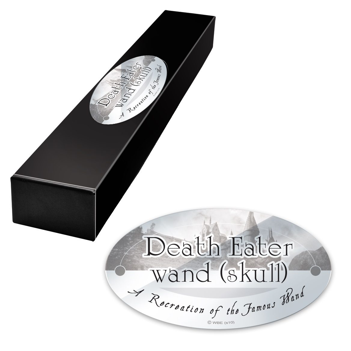 A Death Eater’s wand in a spooky skull design. Character box contains name clip. Wand measures approx 35cm.