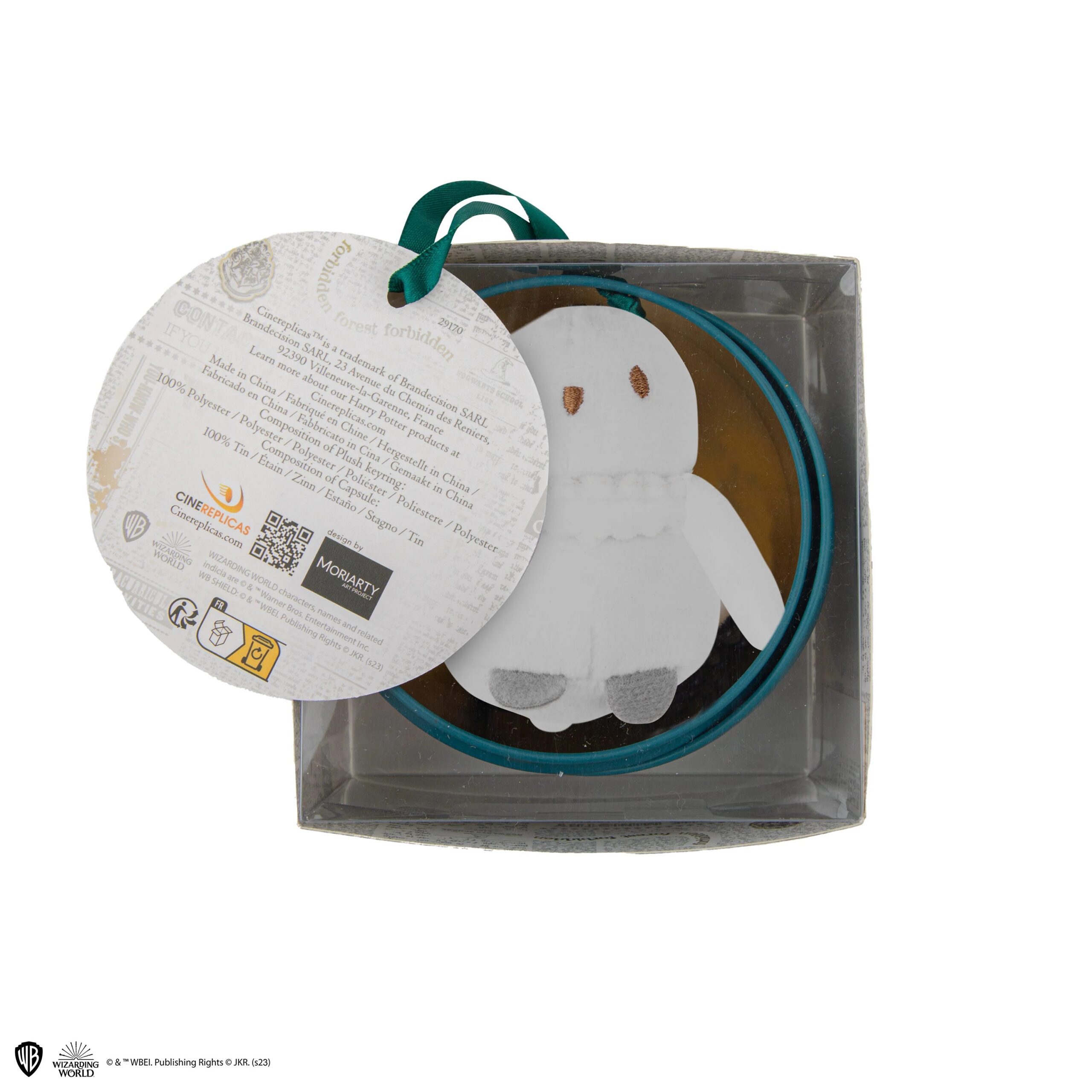 For Christmas, enjoy a Christmas bauble that will look perfect hanging on your tree, or gift this ornament to your loved ones for them to discover a surprise gift on the inside: a beautiful and soft Hedwig keychain plush.