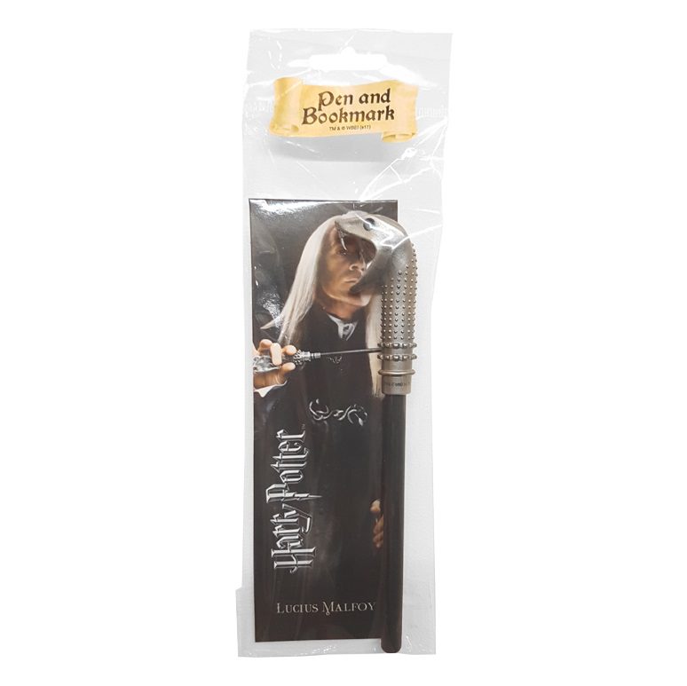 Lucius Malfoy’s wand offered as a pen, complete with a bookmark featuring Malfoy himself.