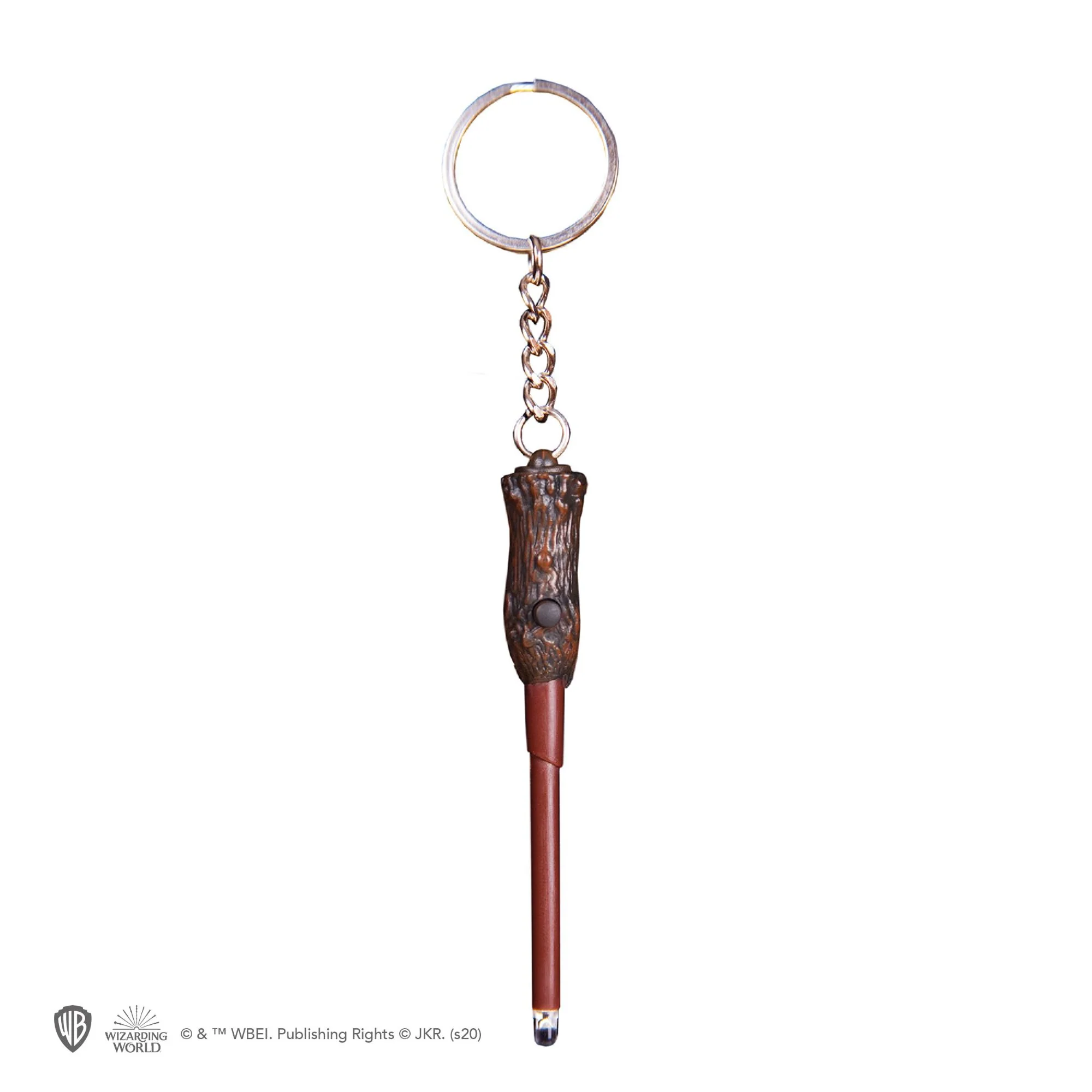 Luminous keychain in the shape of a wand, to easily find your keys in your bag or anywhere. The tip of the keychain lightens up with the LED and emits a strong light as if the spell “Lumos” could truly work!