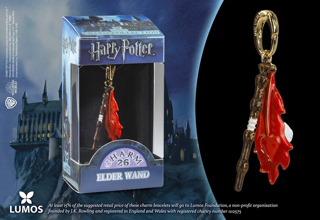Approximately 1.5″ finely crafted charm, featuring gold or silver plated detail. Spring clasp allows it to easily clip on to charm bracelet or combined with a chain to be worn as a pendant (bracelet and chain sold separately). Portions of the proceeds go to the Lumos Foundation.
