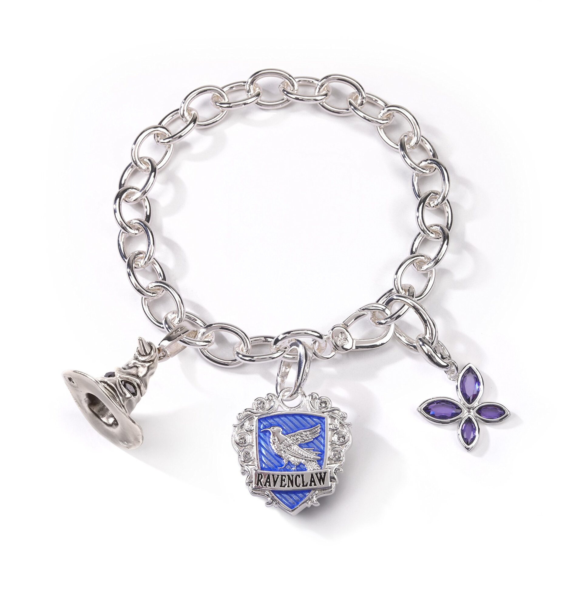 The Ravenclaw Charm Bracelet is a finely worked, silver-plated piece of jewellery adorned with crystals and includes three exclusive charms: The Ravenclaw House Crest, the Sorting Hat and the Lumos Butterfly. The bracelet measures approx. 20 cm in length.