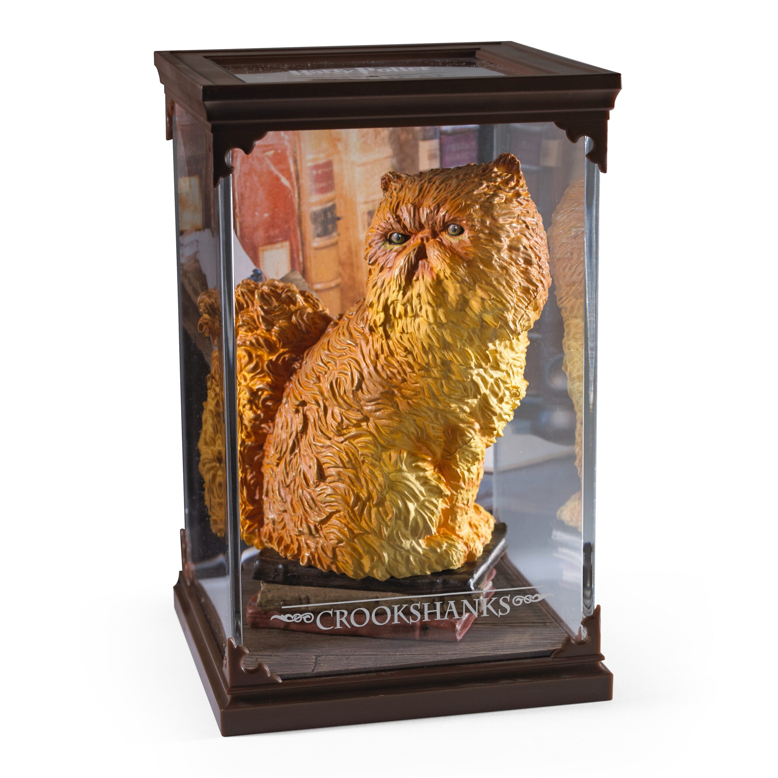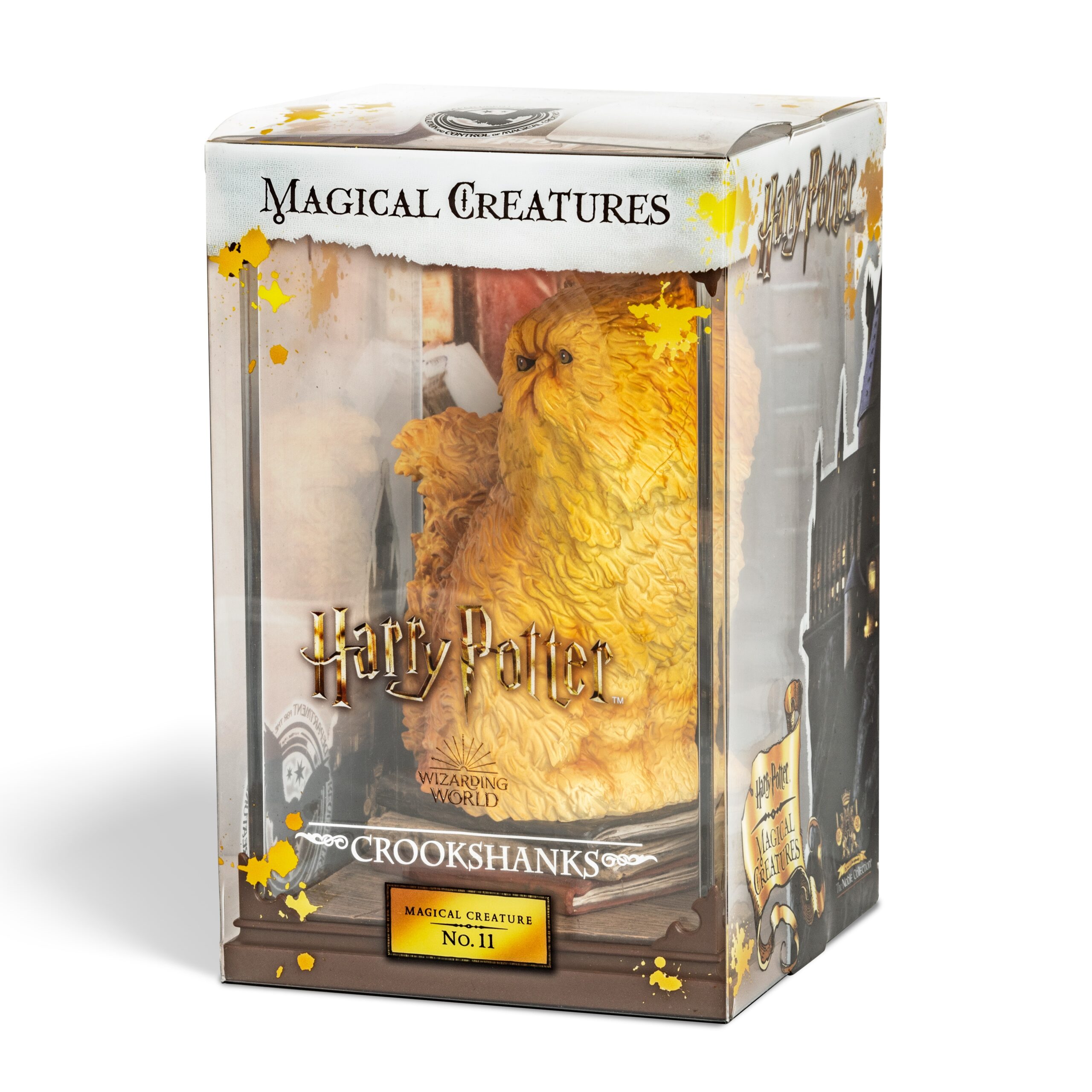 Crookshanks is a half-kneazle orange cat with a distinctive squashed face and is the beloved pet of Hermione Granger. This mini sculpture comes with a hidden Scabbers.