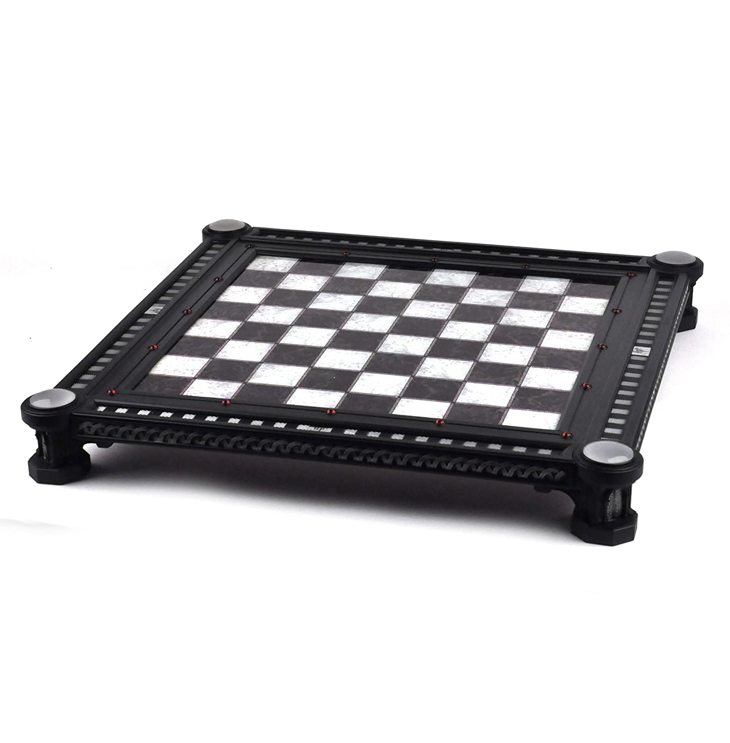 A remarkable recreation of the Final Challenge Chess Set as seen in the movie Harry Potter and the Sorcerer’s Stoneâ„¢ . The 32 chess pieces are made to exact detail and measure from 2 1/2 to 5 1/2 inches in height. The set comes complete with a striking playing board display measuring 20 x 20 inches.