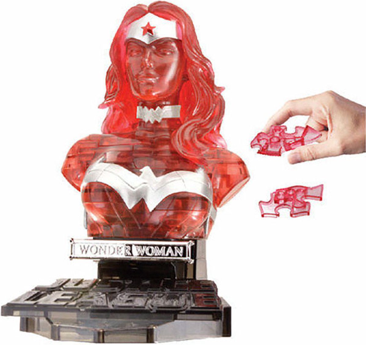 Put her together and you will have your own Clear Wonder Woman bust. This Puzzle is a fun brain teaser that offers some challenge, while letting you create an actual 3D Wonder Woman. The finished puzzle is an awesome 6-inch bust of Wonder Woman!