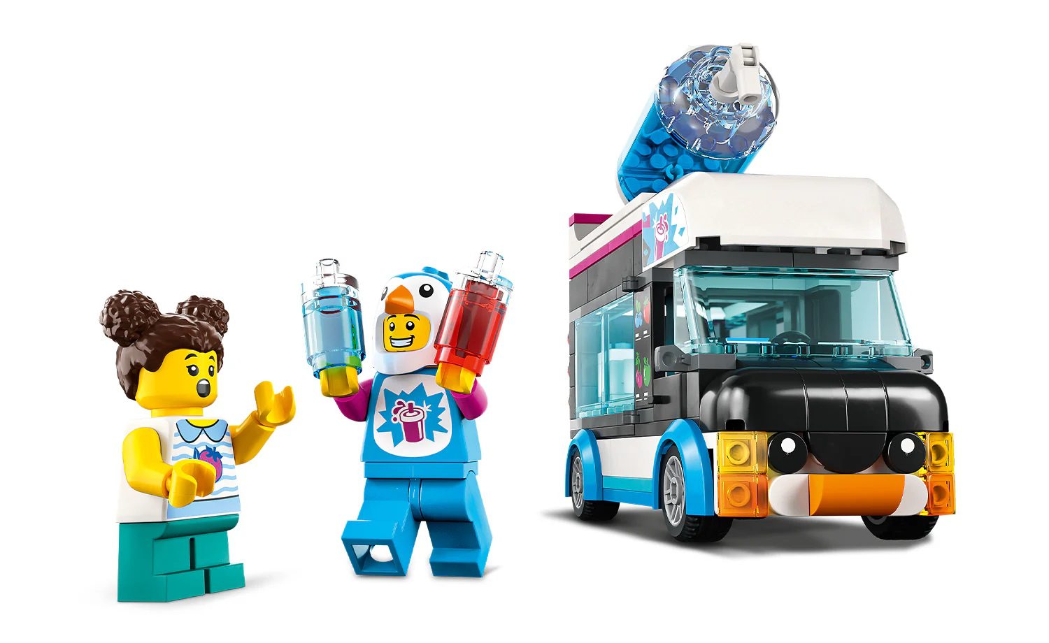 What’s in the box? – Everything kids need to build the Penguin Slushy Van, plus 2 minifigures, including a penguin-suited vendor