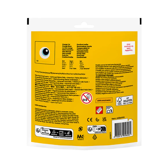 This cute 3in1 playset lets animal fans build a cat with a bowl of milk before rebuilding it into a crocodile with a water puddle or an owl with a nest and 2 eggs.