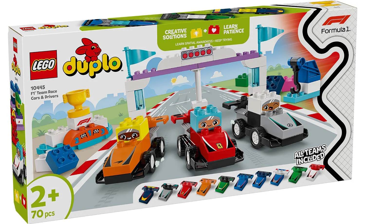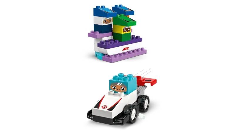 Creative fun for family playtimes – Share your passion for F1® with your preschooler with this toddler toy that includes 10 buildable race cars, 3 driver bricks, a crane toy, start lights and a podium