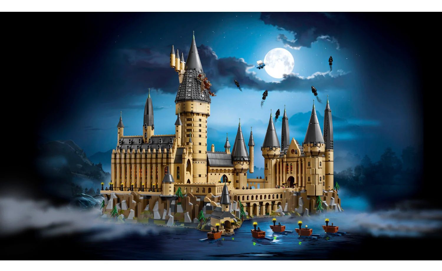 Features a buildable microscale model of Hogwarts™ Castle, hut of Hagrid™, Whomping Willow™ tree and 5 boats.