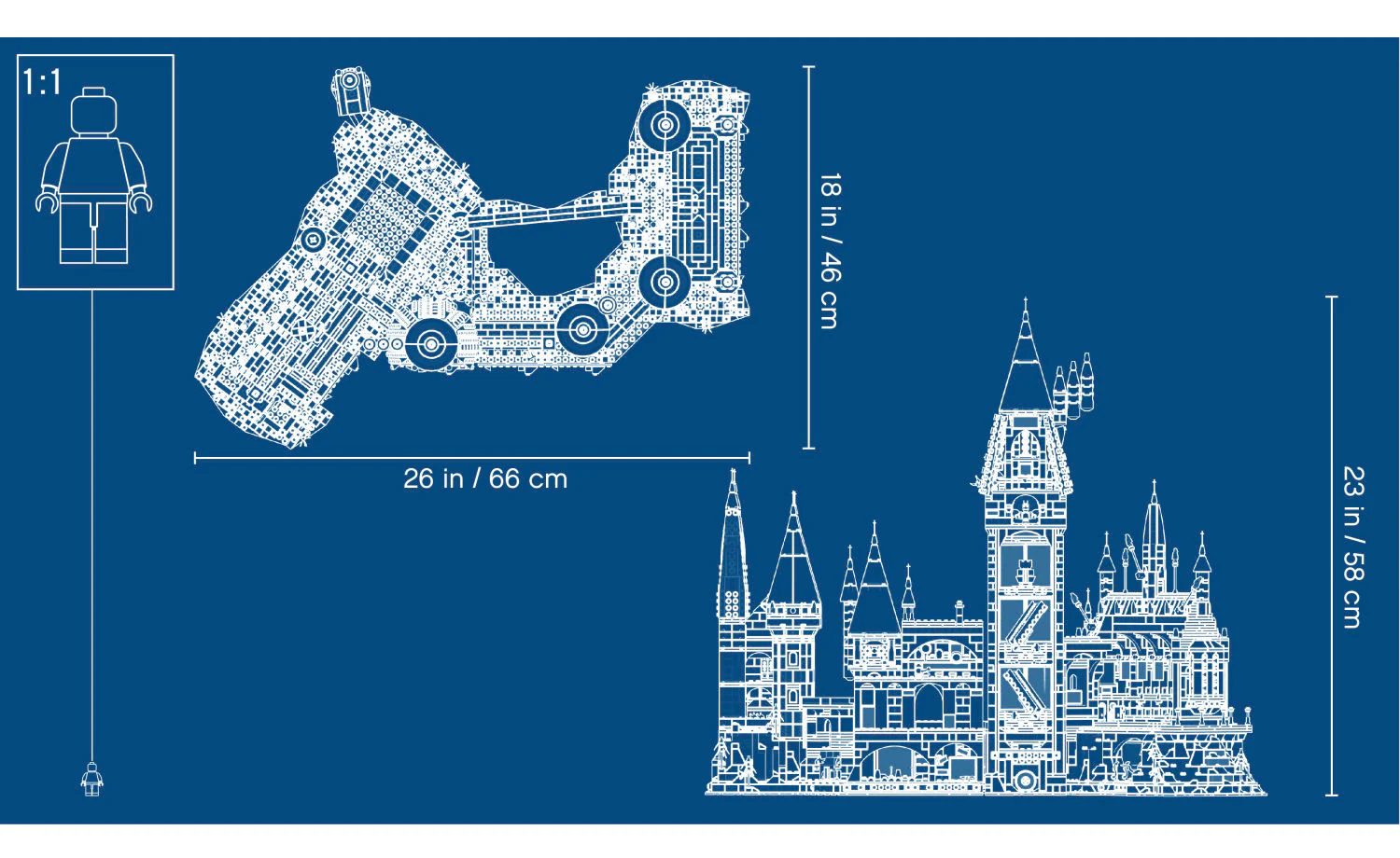 Hogwarts™ Castle measures over 22” (58cm) high, 27” (69cm) wide and 16” (43cm) deep.