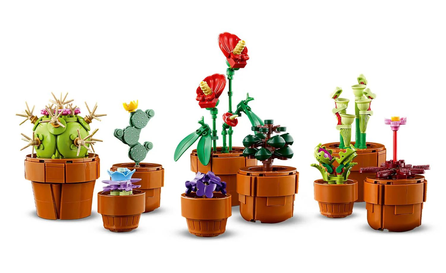 The LEGO® Icons Tiny Plants (10329) building project features flora based on arid, tropical and carnivorous species, each nestled in a buildable, terracotta-coloured container. Enjoy time out crafting each of the 9 plants before displaying them in your home or office.