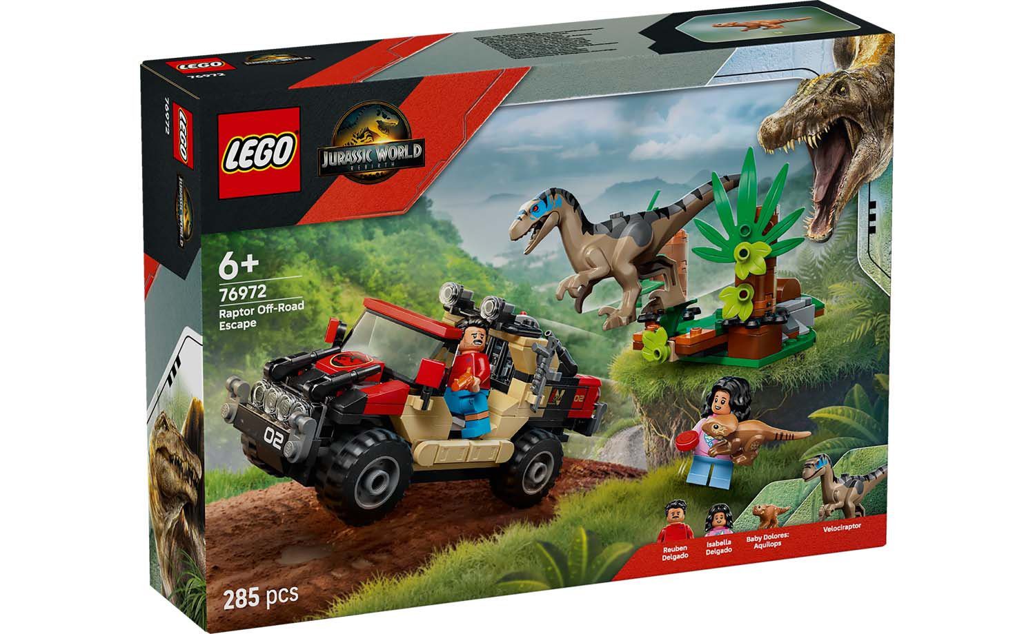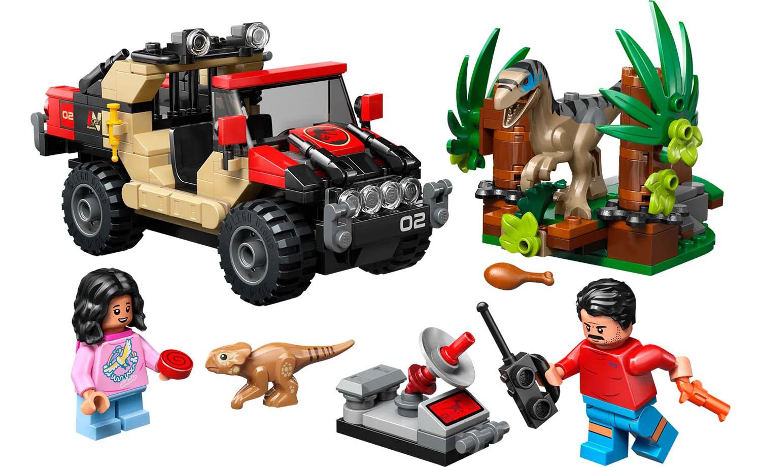 Creative building kit – Includes molded LEGO® dinosaur figures of a baby Aquilops and a Velociraptor, plus an off-road vehicle and Reuben and Isabella minifigures to spark dinosaur hunt play