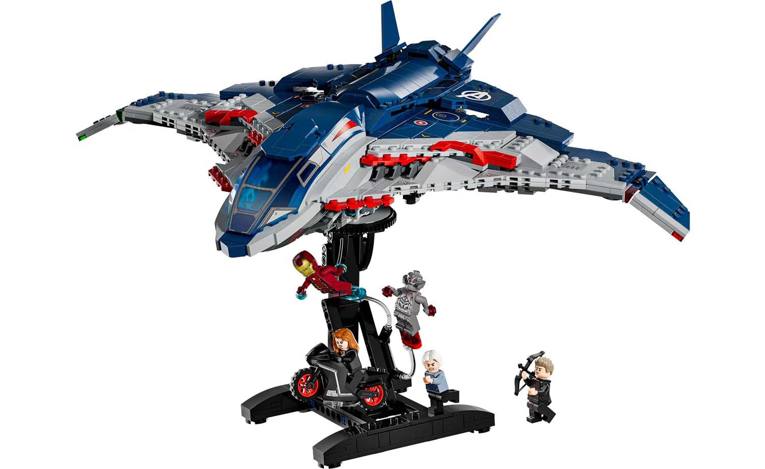 1,131-piece kids’ building kit – The Quinjet on its stand measures over 28 cm (11 in.) high, 30 cm (12 in.) long and 45 cm (17.5 in.) wide