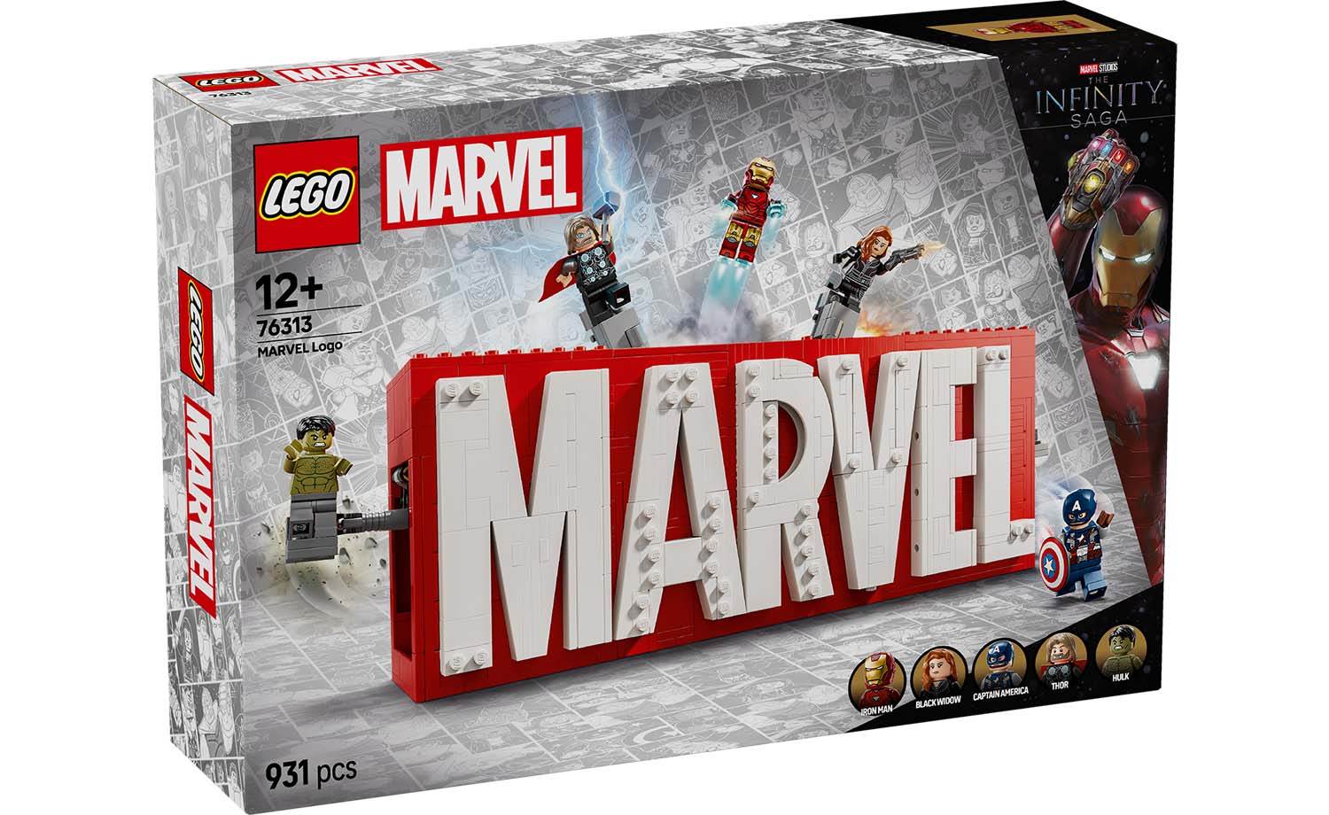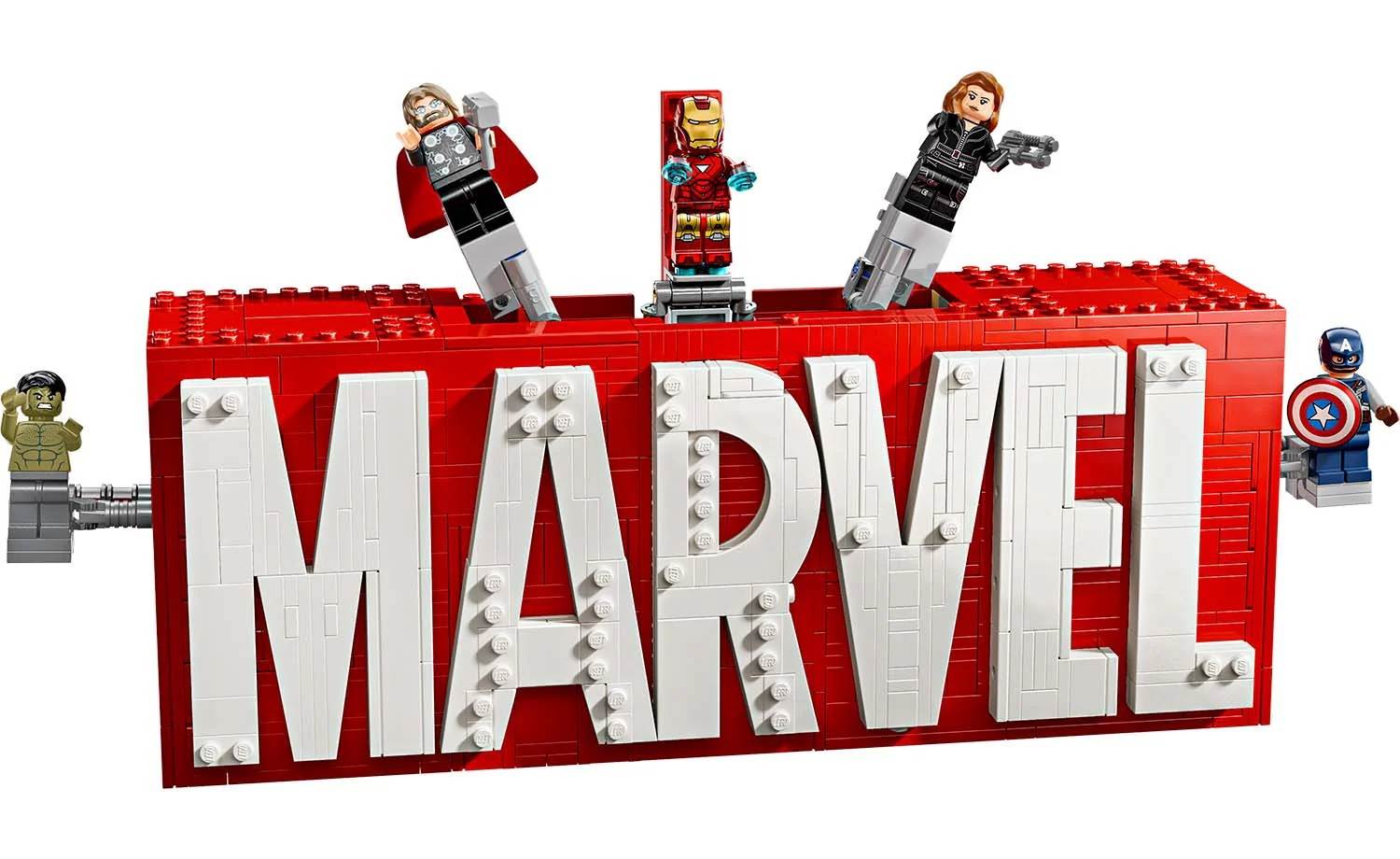 931-piece MARVEL logo set – In its closed position, the Marvel model measures over 4 in. (11 cm) high, 11 in. (28 cm) wide and 2.5 in. (7 cm) deep