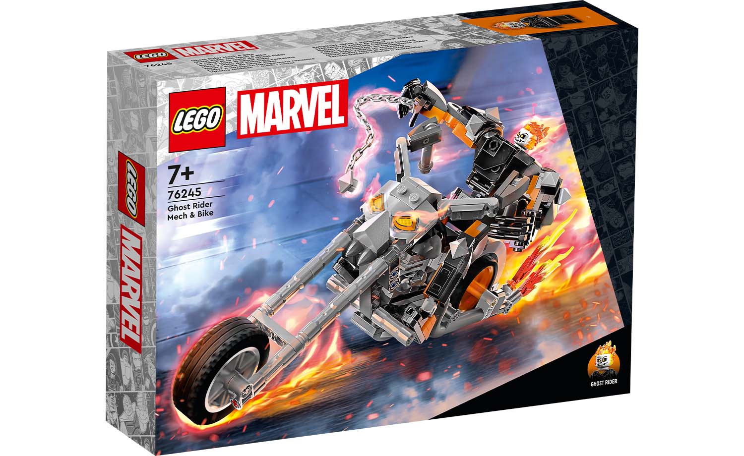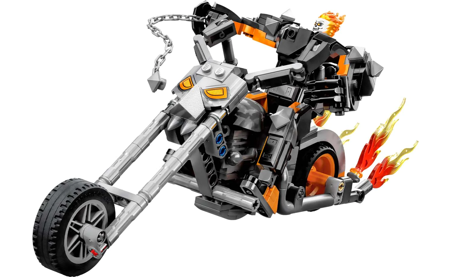 Iconic character – Includes a Ghost Rider minifigure, a buildable Ghost Rider mech with fully jointed arms, legs and fingers, and a scaled-up motorcycle to which the mech attaches