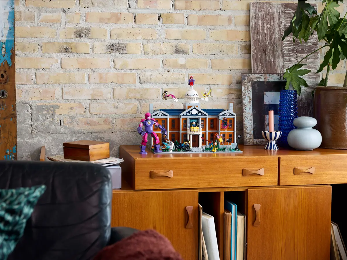 The 2-level 3,093-piece X-Men X-Mansion measures over 40 cm (16 in.) wide and features a buildable Sentinel figure and 10 X-Men minifigures: Professor X, Wolverine, Jean Grey, Cyclops, Storm, Gambit, Rogue, Iceman, Bishop and Magneto. The upper level houses Professor X’s laboratory, Wolverine’s bedroom and a medical lab. On the ground level is a lobby, classroom and a library. On the left of the X-Mansion is the Danger Room training facility, which is accessed via a sliding door and can be customised by reconfiguring walls and accessories. Interactive features include a sliding interactive whiteboard and a rooftop that can be destroyed by activating a switch. The LEGO Sets for Adults range offers model-builders a truly immersive and rewarding experience. X-Men collectible gift for adults – This buildable LEGO® Marvel recreation of the X-Mansion is designed for adult fans of Super Hero films and experienced model-builders Authentic details, iconic characters – Includes 10 minifigures (Wolverine, Professor X, Jean Grey, Cyclops, Storm, Gambit, Rogue, Iceman, Bishop, Magneto) and a buildable Sentinel figure Rewarding challenge – Builders can lose themselves in this large-scale project as they construct a lasting model of an essential and recurring part of Marvel Studios’ X-Men films Realistic accessories – Recognisable elements from the X-Mansion include Cerebro, rockets, chainsaws, a laser and the Sentinel’s minifigure-restraining device Gift for adult Super Hero fans – This eye-catching treat for Marvel enthusiasts is a gift idea for dad, mum or any adult, including yourself Printed and digital guides – As well as high-quality, printed building instructions, a digital version of the guide is available on the LEGO® Builder app More building sets for adults – This creative construction kit is part of the LEGO® Sets for Adults range, designed to deliver a rewarding and immersive escape for anyone who enjoys building models 3,093-piece adult building kit – The completed X-Mansion measures over 27 cm (10.5 in.) high, 40 cm (16 in.) wide and 25 cm (10 in.) deep