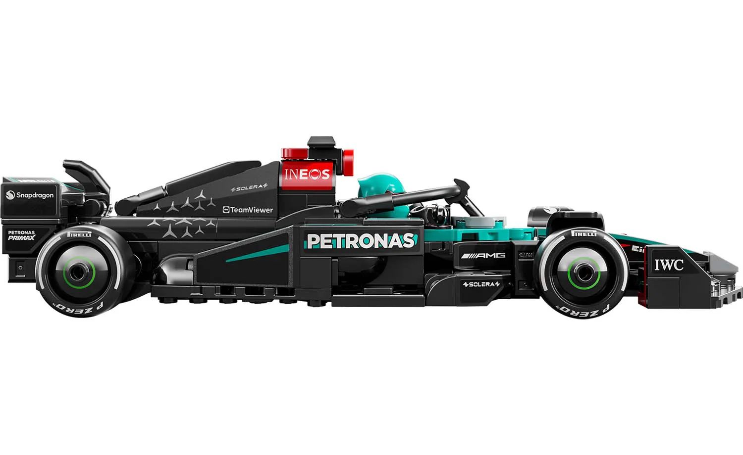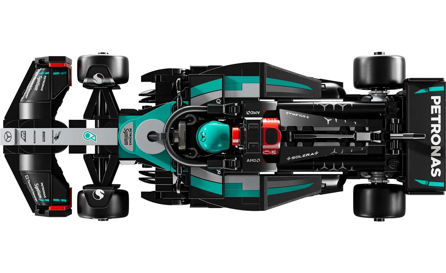 The F1 model car features a cockpit that opens by lifting the halo bar, a rear wing, wishbone suspension, sponsor stickers and wider rear tires imprinted with “Pirelli.” The buildable model also comes with a driver minifigure in a Mercedes-AMG PETRONAS F1 Team outfit and a winged helmet to place inside the cockpit and stage races.
