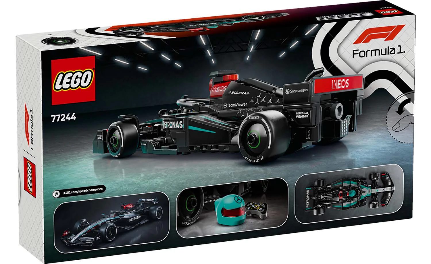 Boys and girls aged 10 plus can collect, build, display and race this awesome LEGO® Speed Champions Mercedes-AMG PETRONAS F1® Team Race Car (77244) toy vehicle. The sleek Mercedes-AMG F1 race car for kids and Mercedes-AMG PETRONAS F1 Team fans includes design details from the car that competed in the 2024 Formula 1® World Championship.
