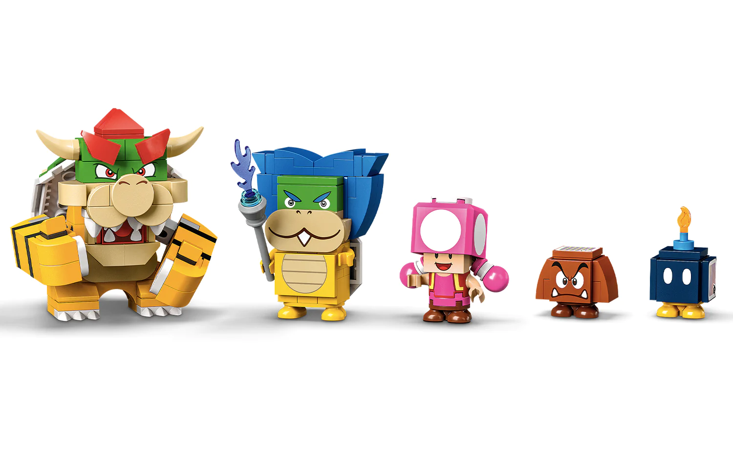 5 LEGO® Super Mario™ toy figures – Bowser, Ludwig, Toadette, a Goomba and a Bob-omb