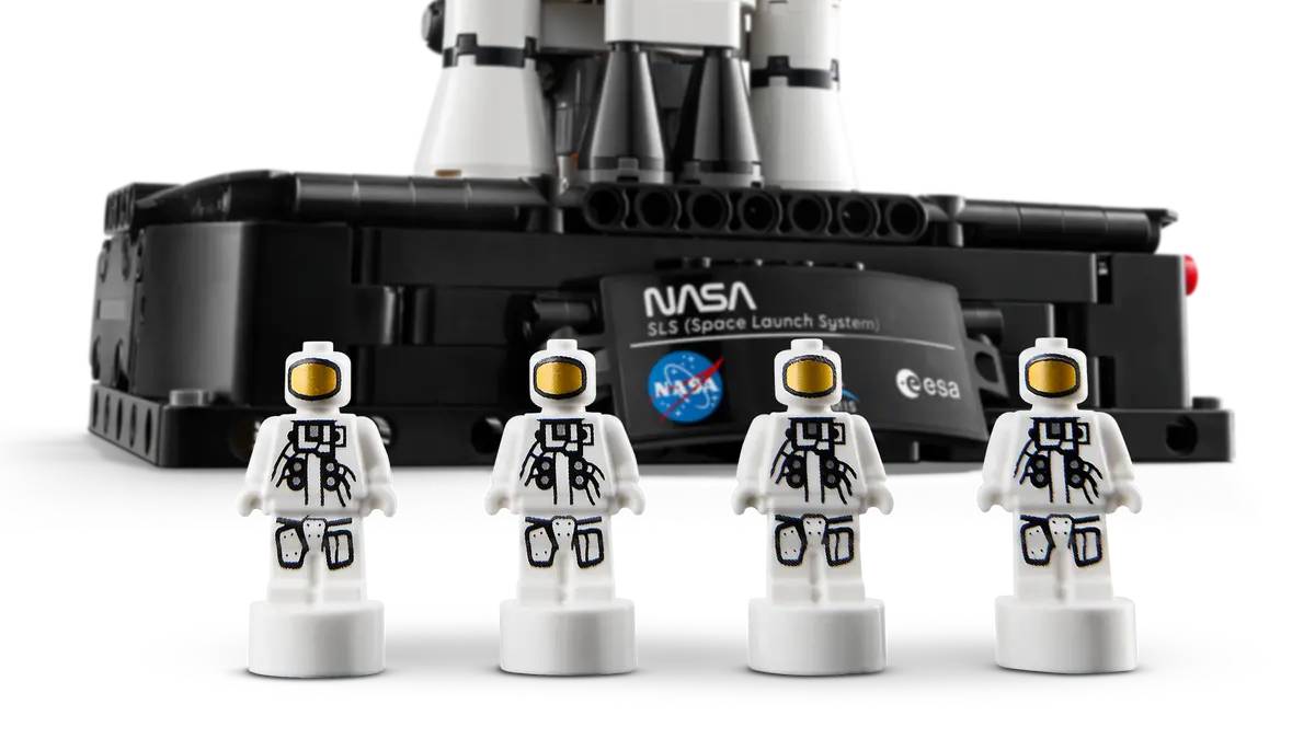 Launch a journey of discovery with this NASA Artemis Space Launch System Rocket model kit (42221) for boys, girls and kids ages 9 plus. The educational LEGO® Technic™ set shows the moment a rocket launches, in 3 distinct stages. Turn the crank to see the solid rocket boosters separate from the core stage, which then also detaches. Continue turning to watch the upper stage with its engine module, Orion spacecraft and launch abort system separate. This rocket building kit has been developed in collaboration with NASA and ESA, and lets kids explore the space launch system that will launch the Orion spacecraft into lunar orbit. It includes 4 astronaut nanofigures, fun blue flame details, plus an information panel to create an eye-catching display. This LEGO Technic building set makes a fun gift for space enthusiasts. Kids can build with confidence using the LEGO Builder app, which lets them zoom, rotate in 3D and track progress with easy-to-follow digital instructions. Set contains 632 pieces.