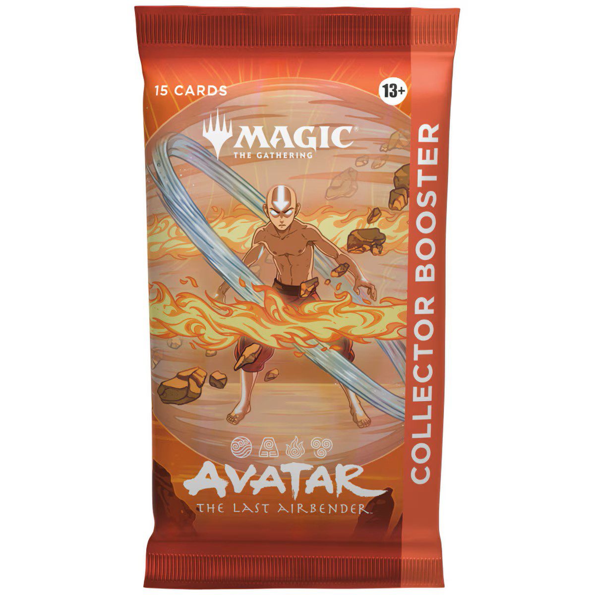 Magic: The Gathering® | Avatar: The Last Airbender™ Collector Booster Team Avatar is back! The action, adventure, and spirit of Avatar: The Last Airbender awaken in Magic: The Gathering. Master new mechanics Earthbending, Airbendending, Waterbending and Firebending to tell your version of the story and discover your Magic playstyle. Bend the elements. Master the game. Discover wonders rivaling Wan Shi Tong’s library with Magic: The Gathering | Avatar: The Last Airbender Collector Boosters! Each booster contains the quenchiest cards from all across the four nations, including rares and/or mythic rares, traditional foils, and a full-art basic land. You may also encounter source material cards and neon ink borderless battle pose cards that celebrate the show’s iconic visuals. Plus, you can even hunt down and capture the Avatar himself: a raised foil Avatar Aang illustrated by show creator Bryan Konietzko! ©2025 Viacom International Inc. TM & ©2025 Wizards Contents: • 15 Magic: The Gathering cards • Collector Boosters may contain these cards: TLA 1–281, 287–392; TLE 1–264 • 12–14 traditional foil cards • Includes 5 cards of rarity rare or higher • 4 uncommon • 5 common • 1 land card • Headliner in <1% of boosters