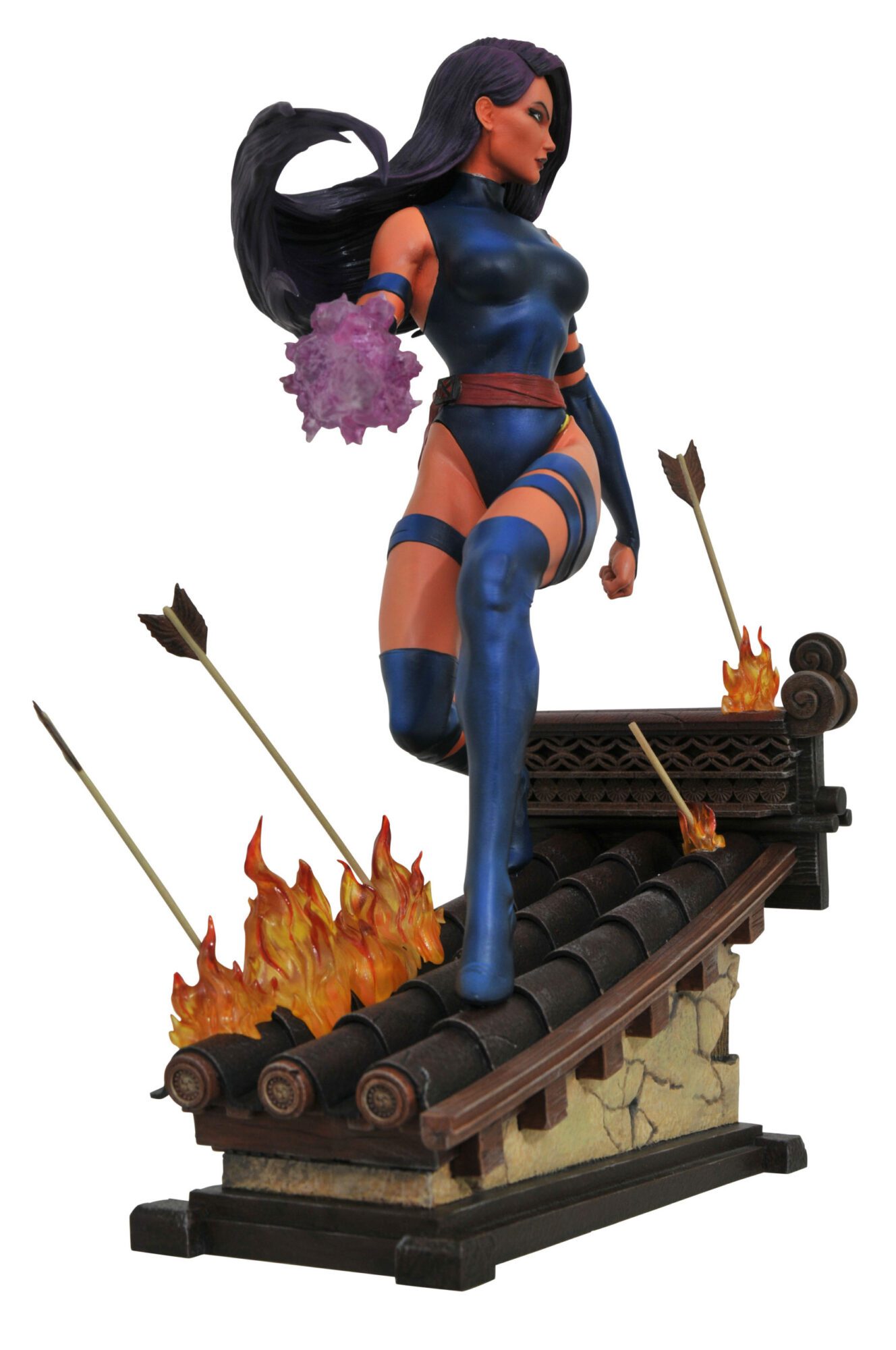 This 12-inch-scale resin statue depicts Psylocke on a burning rooftop, surrounded by ninja arrows. Sculpted by Alejandro Pereira!