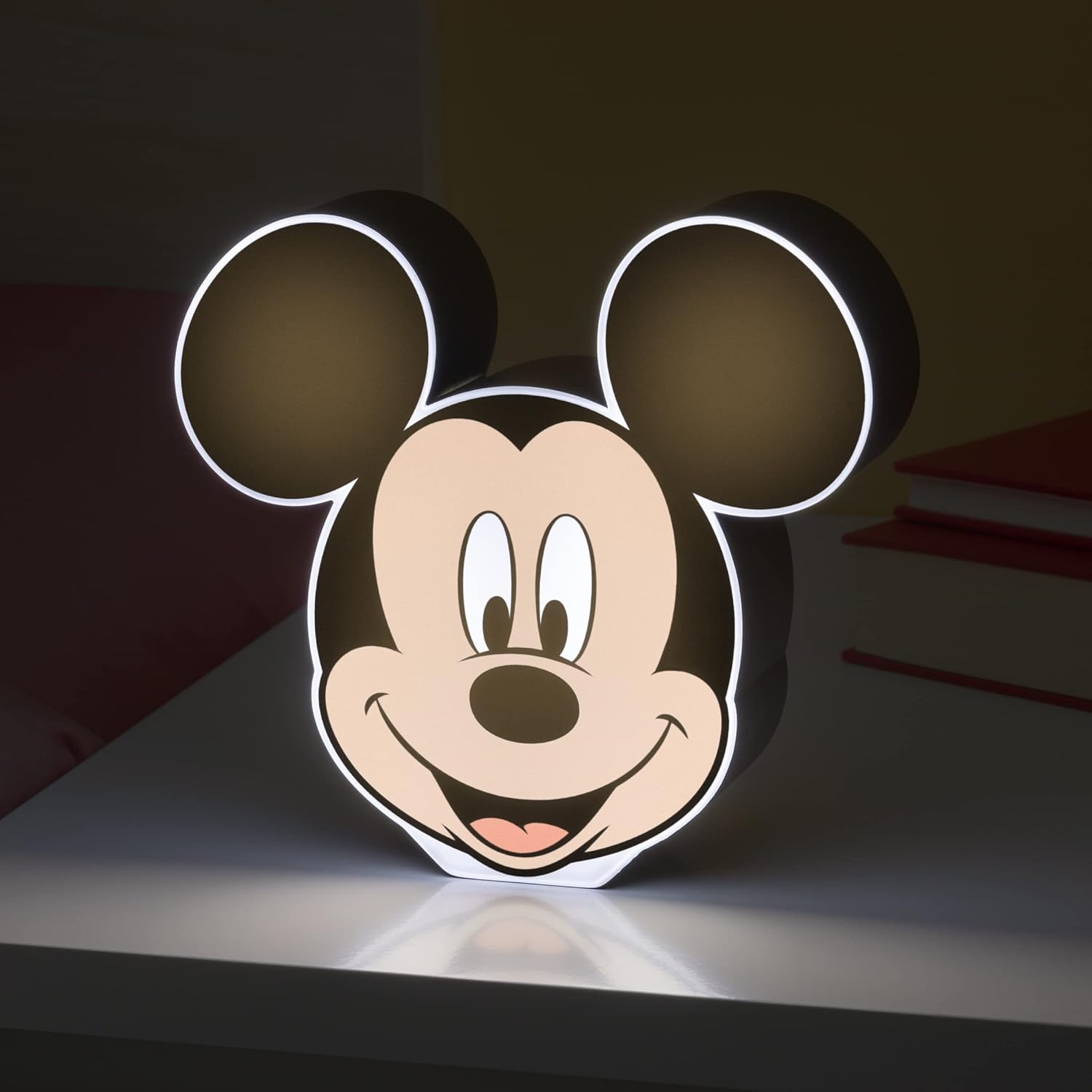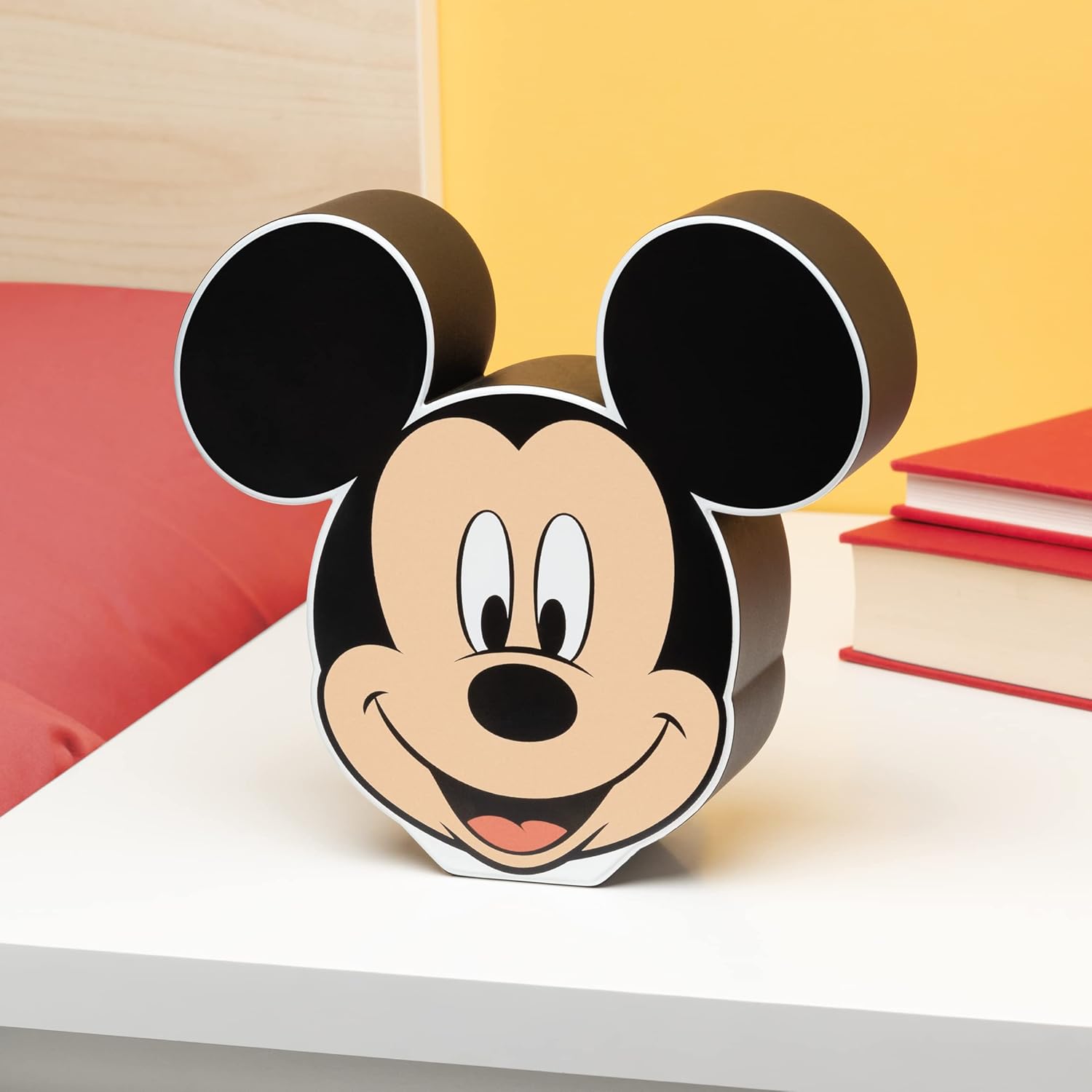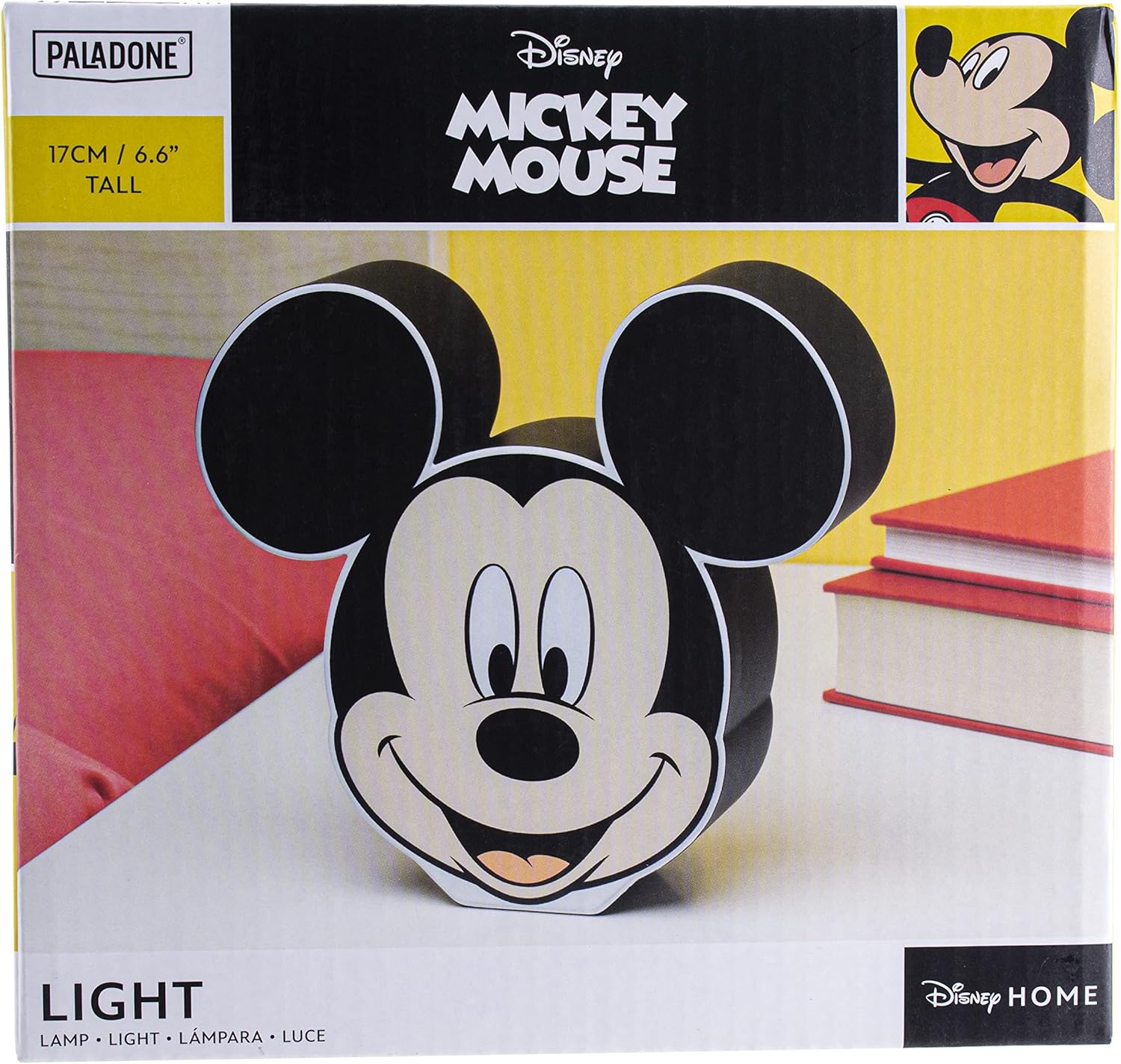 The 17cm (6.6″) tall light is shaped like Mickey Mouse’s head. His classic big ears and beaming smile are printed on the front of the box-style character light.