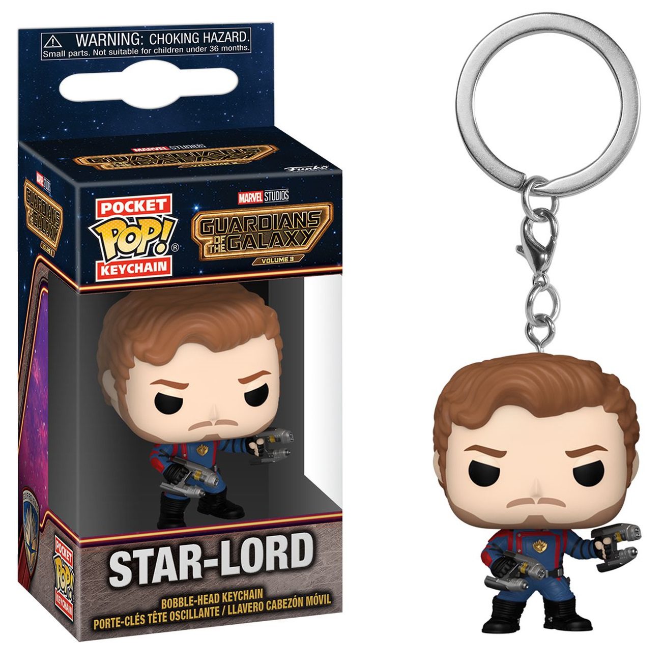 Take off on a galactic adventure with Pop! Keychain Star-Lord on his next mission with his family of misfits. Complete your Guardians of the Galaxy: Volume 3 collection with this cosmic hero. Vinyl keychain is approximately 10 cm long.