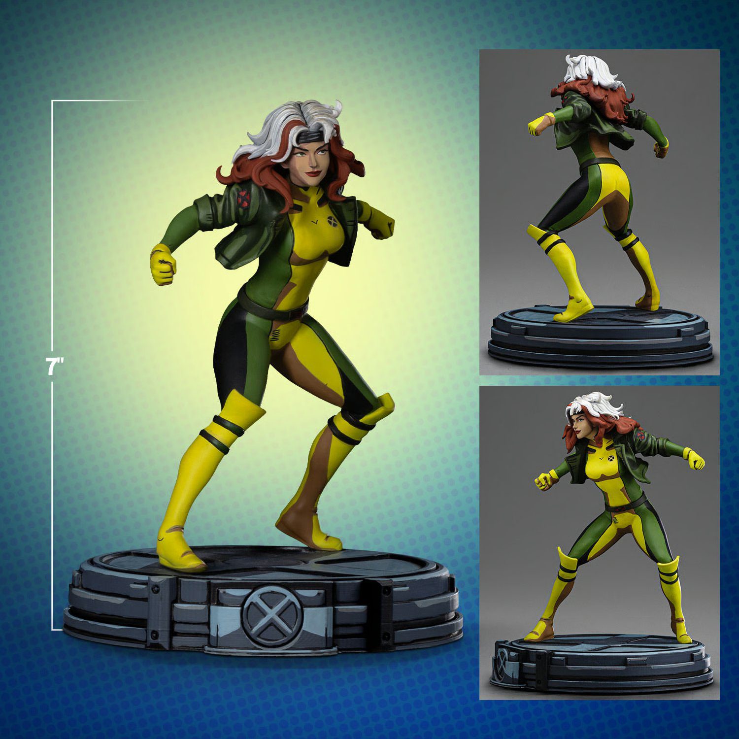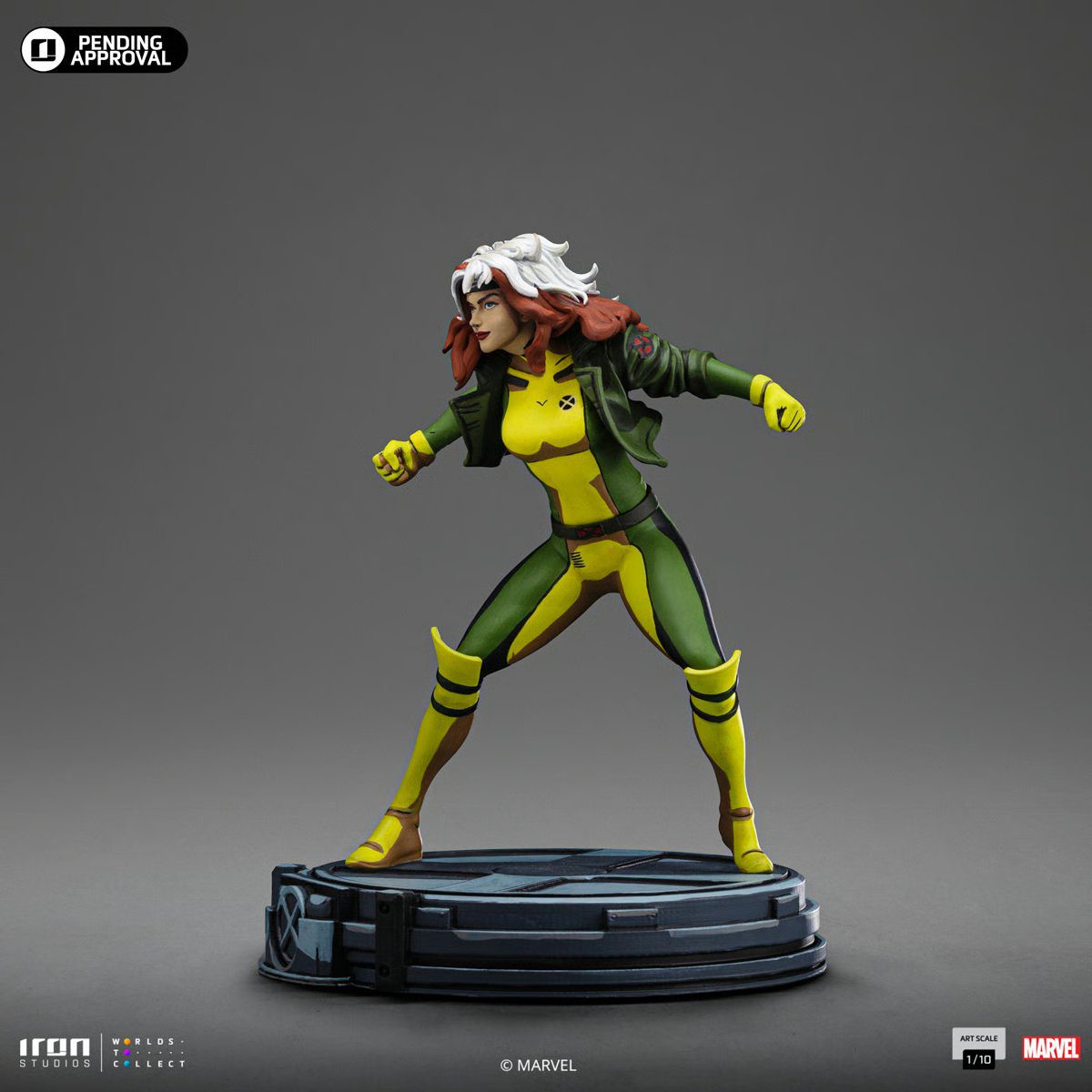 Rogue ran from Mystique and was found by Professor X who felt her anguish and despair. She then got better and became Charles Xavier’s student, joining and X-Men where she fell in love with Gambit. Presenting innovation in her painting in the form of a specific shading that highlights all the figures from this new collection as if the characters were coming out of the TV to the real world, Iron Studios bring the Rogue – X-Men ‘97 – Art Scale 1:10 Scale Statue, over a themed base in the “X” shape of the logo of the super group of mutant heroes.