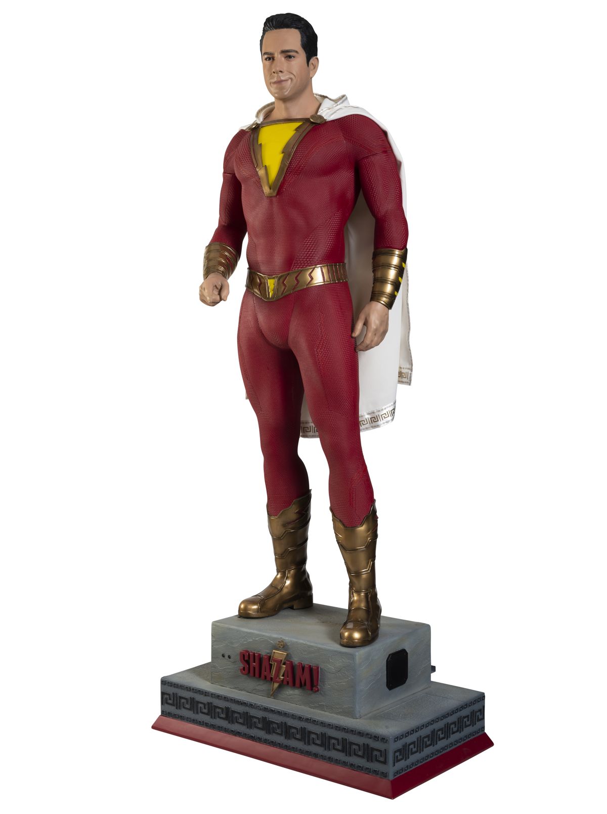 From the blockbuster “SHAZAM!” comes this life-size figure of the titular hero, Shazam! It is made of high quality GRP (fiberglass) and is an impressive 236 cm tall with base. The statue includes an LED set for the arms and chest. In addition, the statue can be equipped with a charging station and a voice module. These are available separately. Due to its size and weight, the item is divided into several boxes and must be put together in a few simple steps.