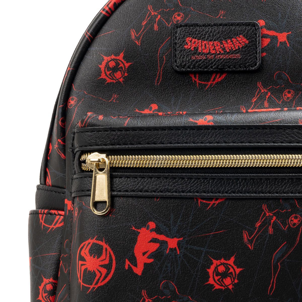 Entertainment Earth Exclusive! Suit up and get ready to swing into action with Miles Morales and this Spider-Man: Across the Spider-Verse Web Mini-Backpack – Entertainment Earth Exclusive inspired by the animated movie! It’s made of faux leather and features cool Spidey imagery in red against a black background, top zipper closure, a front zippered pocket, adjustable straps, matching themed lining, shiny gold-colored hardware, and printed details. This limited edition mini-backpack measures roughly 10 1/2-inches tall x 9-inches wide x 4 1/2-inches long. It’s a fun collectible and a great gift for any Marvel fan. But remember: Our exclusives tend to sell out quickly, so get your order in right away! Ages 15 and up.